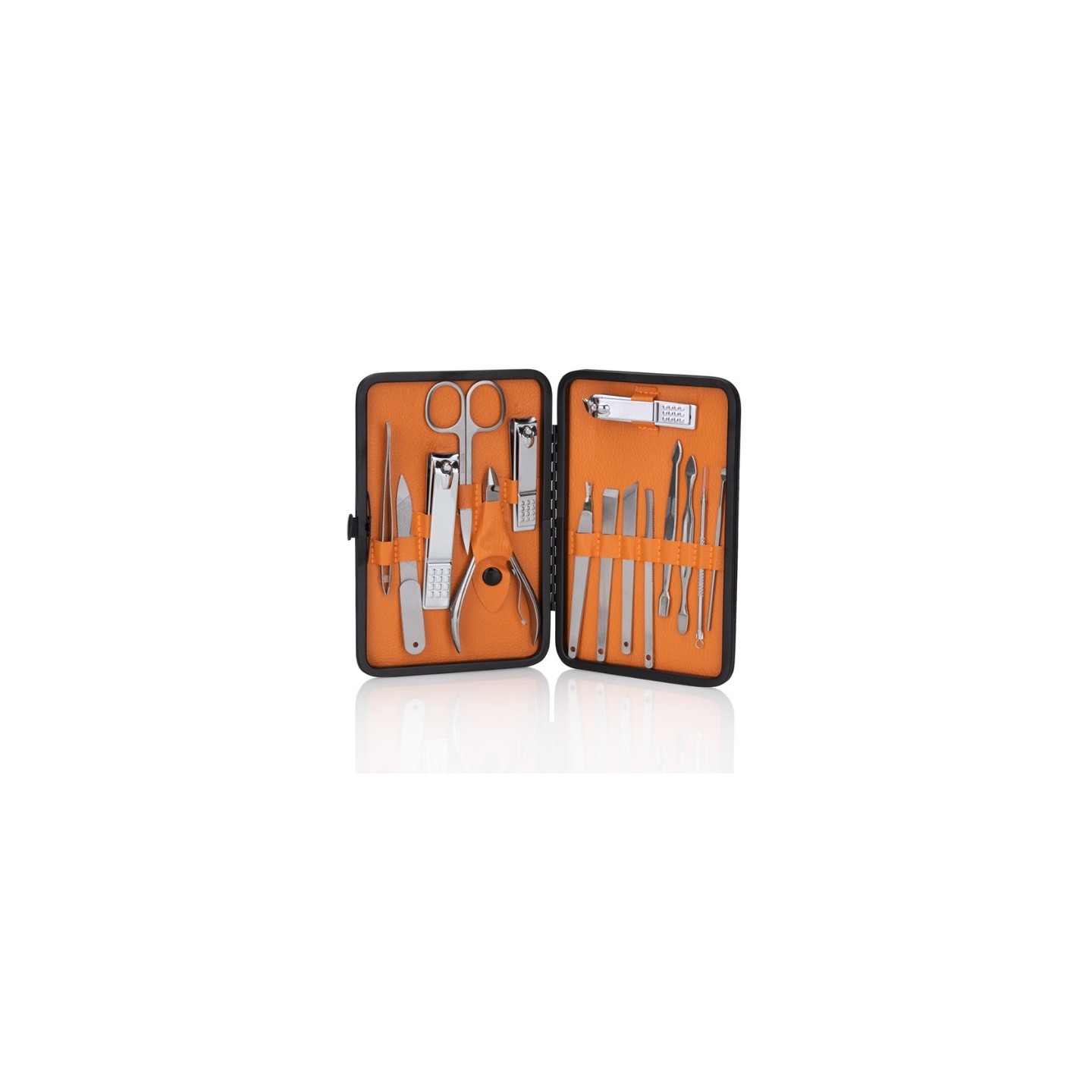 Ein komplettes Kosmetikset ist ein unersetzlicher Helfer bei der Pflege des schönen Aussehens Ihrer Hände, Füße und Ihres Gesichts. Dank 15 verschiedenen Zubehörteilen können Sie sich umfassend um sich selbst kümmern, ohne das Haus zu verlassen. Das Set ist in einem stilvollen, schwarz-braunen Etui verpackt, das praktisch, elegant und perfekt für jeden Anlass ist.