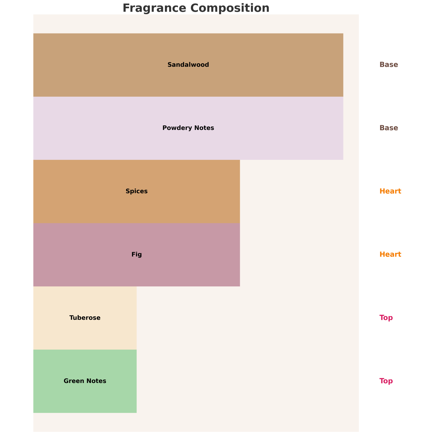Es ist eine frische, elegante fruchtig-florale Komposition mit grünen Akkorden, Tuberose, Feige und einem pudrigen Abgang.