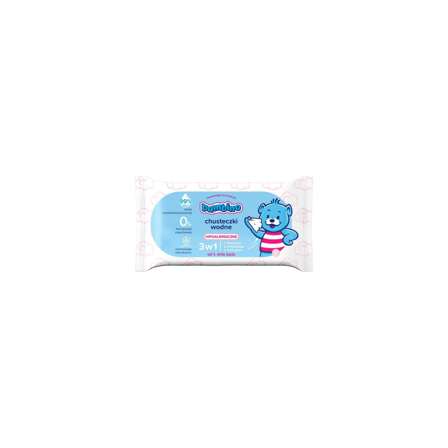 Bambino 3in1 Water Wipes sind außergewöhnlich sanfte Tücher für die tägliche Pflege der empfindlichen Haut von Babys und Kindern. Sie bestehen zu 99 % aus Wasser und sind daher für den Einsatz ab den ersten Lebenstagen geeignet. Sie si perfekt zum Windelwechseln sowie zur Reinigung von Händen und Gesicht – ohne das Risiko von Reizungen. Die Formel der Tücher wurde dermatologisch getestet und enthält keinen Alkohol, keine Parabene und keine Duftstoffe. Das zarte Material ist weich, strapazierfähig und sicher für die zarte Babyhaut.