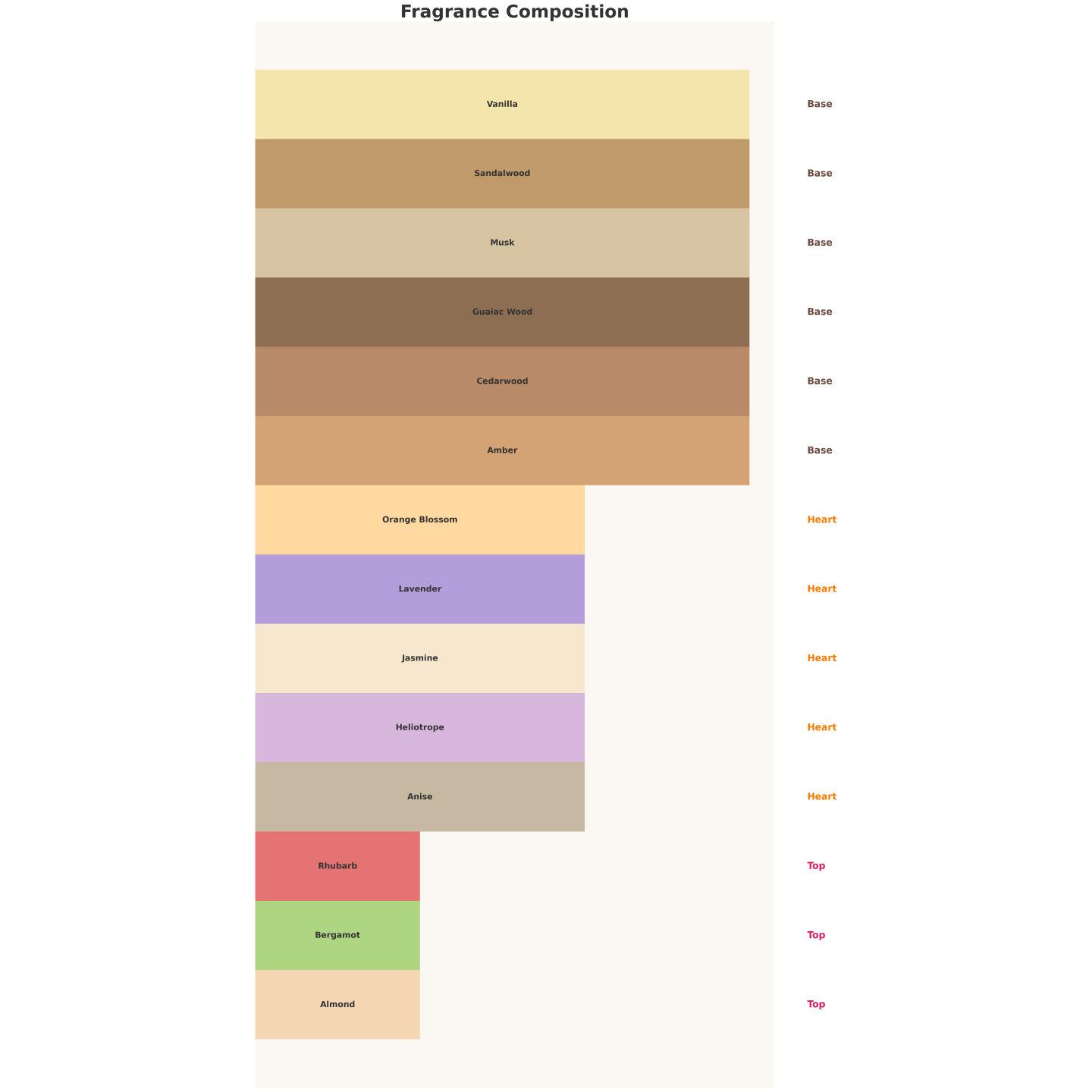 Frisch und süß im Auftakt (Bergamotte, Mandel, Rhabarber), blumig und aromatisch im Herzen (Lavendel, Jasmin, Heliotrop, Anis) und warm und cremig in der Basis (Vanille, Sandelholz, Amber).