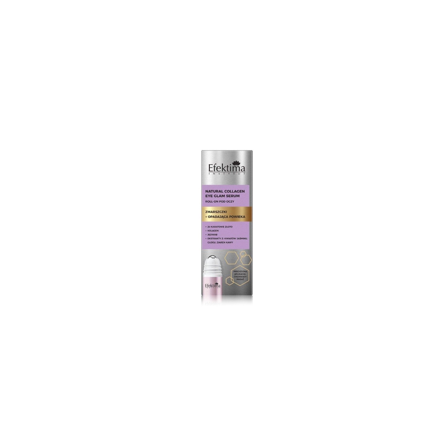 Das exklusive Natural COLLAGEN – EYE GLAM Serum wurde speziell für die anspruchsvolle Hautpartie um die Augen entwickelt – die dünnste, anfälligste Haut, die zu Falten, nachlassender Festigkeit und Anzeichen von Müdigkeit neigt. Diese leichte Roll-on-Emulsion vereint Wirksamkeit und einfache Anwendung. Die kühlende Spitze des Applikators ermöglicht ein präzises Auftragen und sorgt gleichzeitig für eine angenehme Massage. Ein einzigartiges Duo aus Weißem Jasmin und Weißdorn wirkt vielseitig: Es strafft, verbessert den Teint, glättet und unterstützt einen Lifting-Effekt si ein sichtbar geliftetes Oberlid. Das Serum reduziert Augenringe und Tränensäcke und verleiht den Augen ein frisches, jugendliches Aussehen. Meeresplankton-Extrakt verbessert sichtbar die Hautfestigkeit, reduziert feine Linien und sorgt für einen sofortigen Glättungseffekt. Ausgewählte Öle – Avocado-, Argan- und Hanföl – fördern die Hautelastizität, nähren und regenerieren die Haut und garantieren ein angenehmes und geschmeidiges Hautgefühl. Die Basis des Serums aus Kollagen und hydrolysiertem Elastin stellt die Festigkeit und Geschmeidigkeit der zarten Augenlidhaut wieder her. Es enthält Pflanzenextrakte aus Kaffeebohnen, Pfingstrosen und Rotteeblättern, die die Haut aufhellen, beruhigen und beleben. Dezentes 24-karätiges Gold unterstreicht den Anti-Falten-Effekt.
