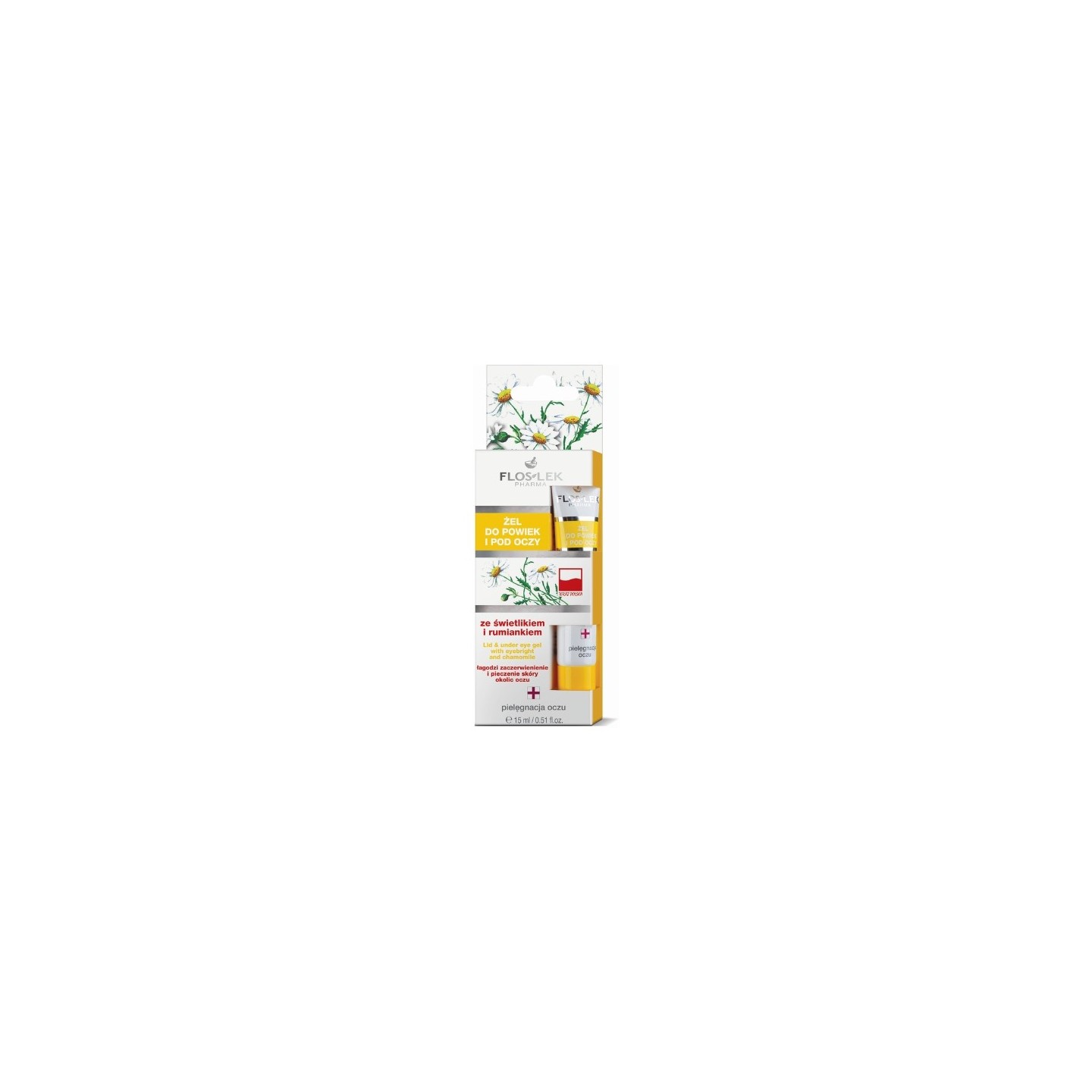 Gel mit Augentrost und Kamille ist für die Pflege der Haut um die Augen bestimmt, die zu Rötungen, Reizungen und Brennen neigt. Es lindert die Symptome müder Augen und lindert gereizte, rote und brennende Haut. Das Produkt beseitigt das Gefühl des sogenannten „schwere Augenlider“ und beseitigt die Spannung und Rauheit der Epidermis bei Menschen, die regelmäßig Augen-Make-up verwenden. Darüber hinaus wirkt es sich positiv auf die Hautschutzbarriere aus, reduziert Tränensäcke und gleicht den Hautton aus. Das Gel kann unbedenklich beim Tragen von Kontaktlinsen, Permanent Make-up und nach Wimpernstyling-Behandlungen verwendet werden. Seine Eigenschaften sind: