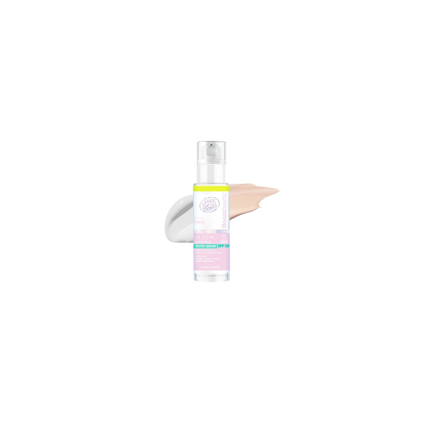 FaceBoom BOOMBASTIC LAB TINTED SPF 50 ist ein unersetzliches element der täglichen Pflege, das fortschrittlichen Sonnenschutz mit einer subtilen Verschönerungswirkung kombiniert und die Haut gesund, strahlend und perfekt vor den schädlichen Auswirkungen von UV-Strahlen schützt.