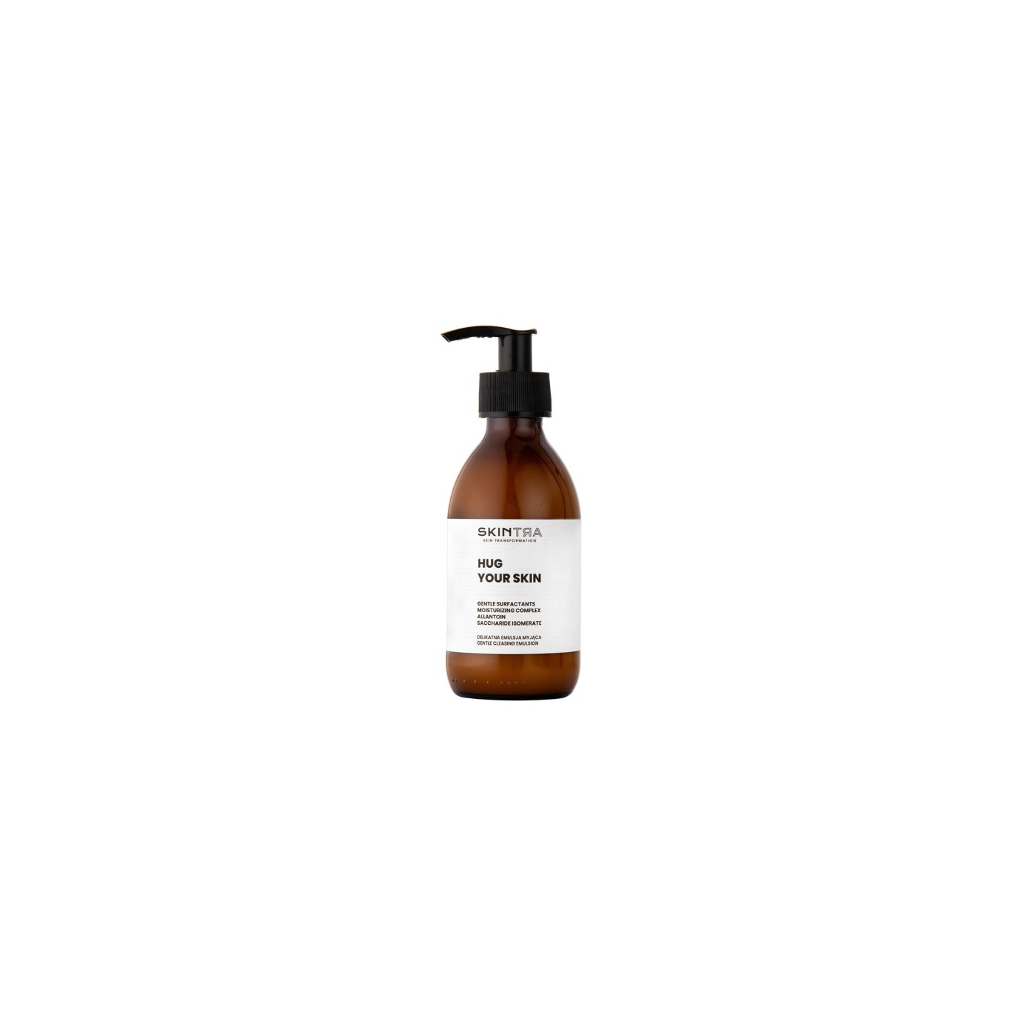 „Hug Your Skin“ ist eine sanfte Reinigungsemulsion für verschiedene Hauttypen, auch für trockene und zu Reizungen neigende Haut. Seine milden Reinigungssubstanzen reinigen die Haut effektiv, unterstützen gleichzeitig die natürliche Hydrolipidbarriere und hinterlassen eine erfrischte und beruhigte Haut. Das Produkt beeinflusst den natürlichen pH-Wert der Haut nicht und ist daher sanft und sicher in der Anwendung. Angereichert mit Squalan und Traubenöl stärkt die Emulsion die Schutzbarriere der Haut und schützt so vor übermäßigem Wasserverlust. Saccharid-Isomerat spendet perfekt Feuchtigkeit, reduziert Trockenheit und Reizungen, während Allantoin die Haut beruhigt, die Regeneration unterstützt und für ein angenehmes Gefühl sorgt. Die Emulsion ist sanft zur Augenpartie und verursacht kein Spannungs- oder Trockengefühl auf der Haut. Durch die samtige, cremige Konsistenz lässt es sich leicht verteilen. Das Produkt wird bei empfindlicher, trockener und zu Reizungen neigender Haut sowie bei Säure- oder Retinoidbehandlung empfohlen. Es ist für alle Hauttypen geeignet.