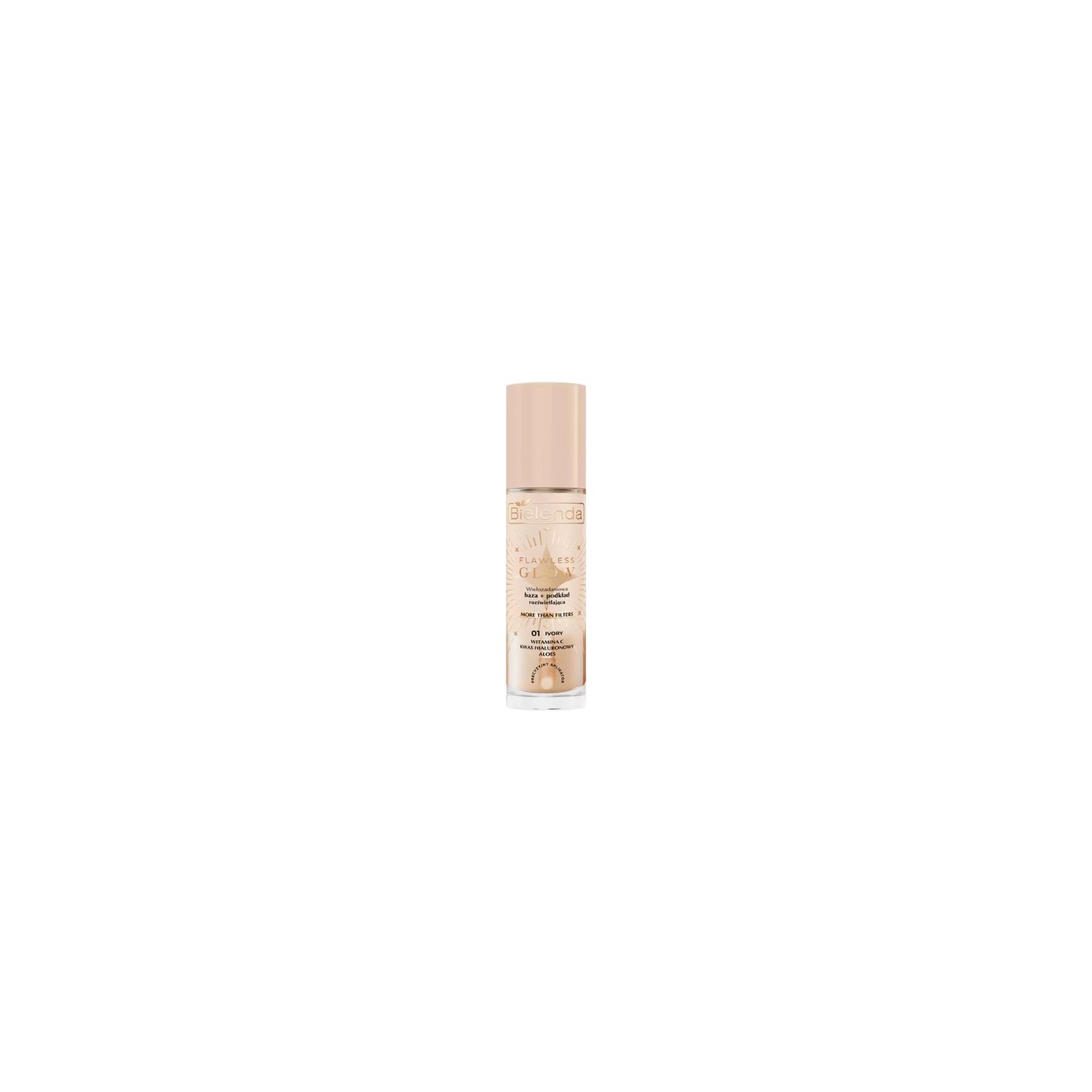 01 Ivory Multi-Purpose Primer + Foundation – 3-in-1: Primer, leichte Foundation und optischer Filter. Mit Peptiden, Vitamin C und Hyaluronsäure hellt es den Hautton auf, spendet Feuchtigkeit und gleicht ihn aus.