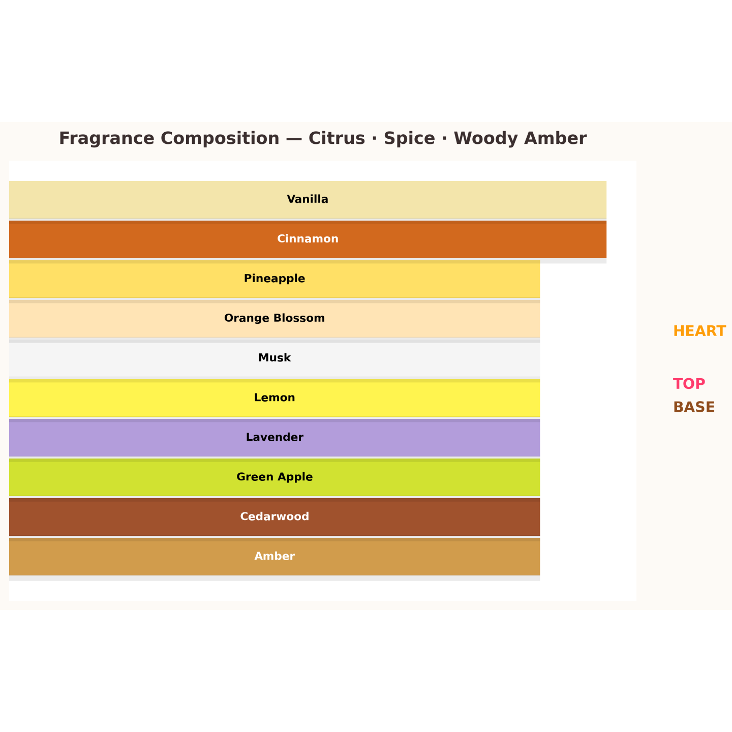 Eine frische, dynamische farn-fruchtige Komposition für den modernen, charismatischen und energiegeladenen Mann. Eine spritzige Kopfnote aus Zitrone, grünem Apfel und Ananas gibt den Takt vor. Zimt, Orangenblüte und Lavendel verleihen der Herznote Eleganz mit einer würzigen Note. Die Basis bilden Vanille, Moschus, Zeder und Amber – ein sinnlicher, tiefer Abgang mit hervorragender Haltbarkeit. Perfekt für Tag und Abend.