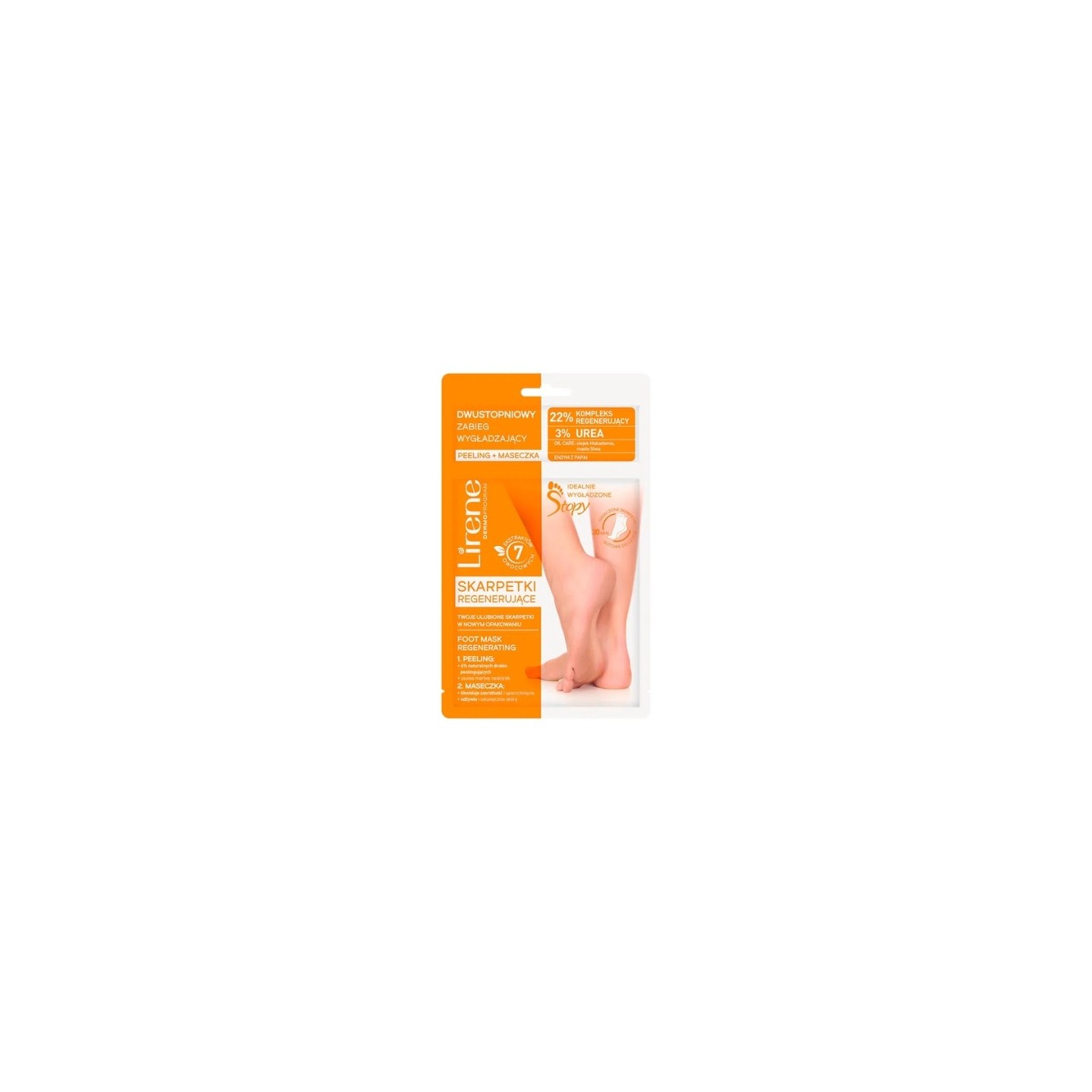 Intensiv glättendes, grobkörniges Enzympeeling. Dieses einzigartige Peeling entfernt effektiv abgestorbene Hautzellen und sorgt für einen frischen und strahlenden Teint. Dank seiner Wirkung wird die Haut glatt und auf die nächste Regenerationsphase vorbereitet. Eine regenerierende Maske in Form getränkter Socken. Diese innovative Maske wurde entwickelt, um die Haut mit konzentrierten Nährstoffen und feuchtigkeitsspendenden Inhaltsstoffen zu versorgen. Ziehen Sie die Socken einfach an Ihre Füße und lassen Sie sie ein paar Minuten einwirken. Nach dem Abwaschen der Maske ist die Haut seidig glatt und intensiv mit Feuchtigkeit versorgt.