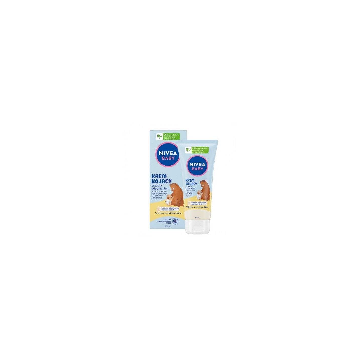 Die beruhigende Anti-Scheuer-Creme ist ein Produkt, das für die zarte und empfindliche Haut von Babys ab den ersten Lebenstagen entwickelt wurde. Seine auf natürlichen Inhaltsstoffen wie 100 % natürlichem Mandelöl und den Vitaminen B5 und E basierende Formel sorgt für sofortige Linderung und Hautregeneration und wirkt bis zu 12 Stunden. Die Creme wird vom polnischen Centrum empfohlen, was ihre Sicherheit und Wirksamkeit bestätigt.