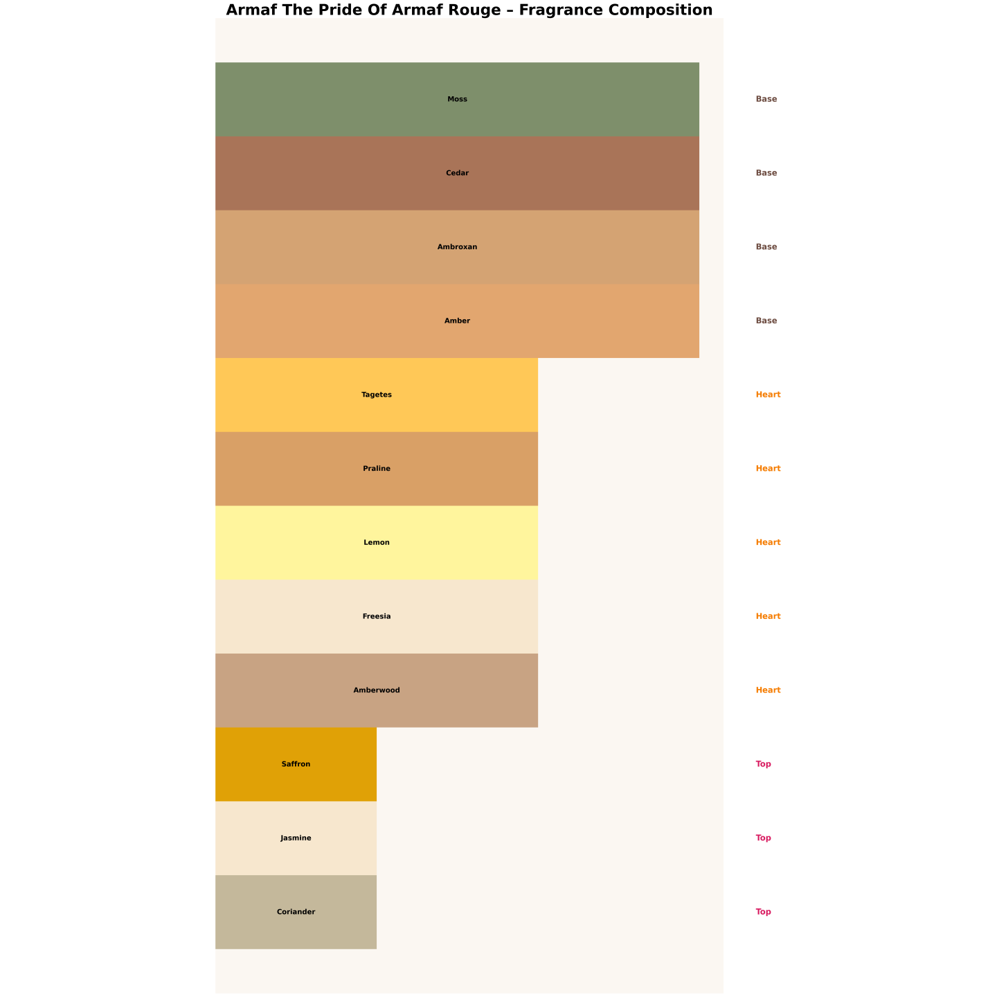 Der Armaf The Pride White Flakon fängt diese jahrtausendealte Dufttradition perfekt ein – elegant, reichhaltig und unglaublich feminin. Der Duft eröffnet si einer spritzigen, belebenden Mischung aus Zitrone und Bergamotte, die ein Gefühl von Frische, Reinheit und sommerlicher Leichtigkeit vermittelt. Die Herznote besticht durch eine würzige und ungewöhnliche Komposition aus Zimt und Muskatnuss, untermalt von natürlich aromatischem Eichenmoos, die dem Parfum Tiefe und einen prachtvollen, orientalischen Charakter verleiht. Die Basisnote umhüllt die Sinne mit einer cremigen Mischung aus Sandelholz, Tonkabohne und Vanille und macht den Duft weich, elegant und unglaublich feminin. Er hinterlässt eine anhaltende, subtil süße Aura. Die gesamte Komposition präsentiert sich in einem luxuriösen weißen Flakon, dessen Design – zusammen mit der als rotes Leder gestalteten Schachtel – das Prestige und den Reichtum der arabischen Parfümerietradition unterstreicht.