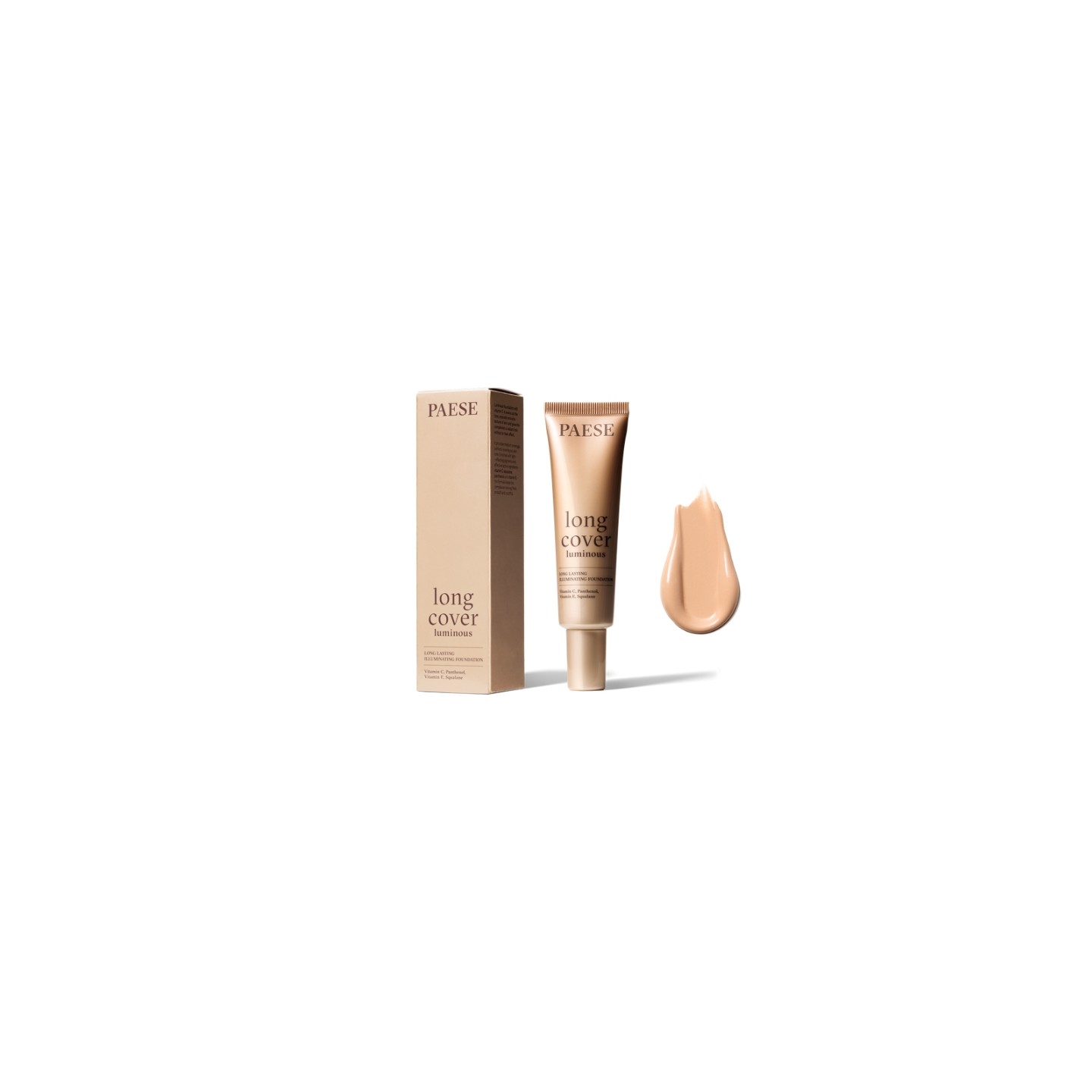 Long Cover Luminous ist eine Foundation, die makelloses Make-up mit Hautpflege vereint. Die cremige, hochpigmentierte Formel si mühelos mit dem Teint und hinterlässt ein natürliches, strahlendes Finish ohne Streifen oder Flecken. Die Foundation bietet den ganzen Tag über ein angenehmes Tragegefühl, trocknet die Haut nicht aus und beschwert sie nicht, selbst bei stärkerer Deckkraft. Dank Vitamin C, Squalan, Panthenol und Vitamin E wirkt die Haut nach dem Auftragen frisch, gesund und angenehm gepflegt. Das Produkt wirkt sofort und langanhaltend – es kaschiert effektiv kleine Unreinheiten und pflegt gleichzeitig den Teint.