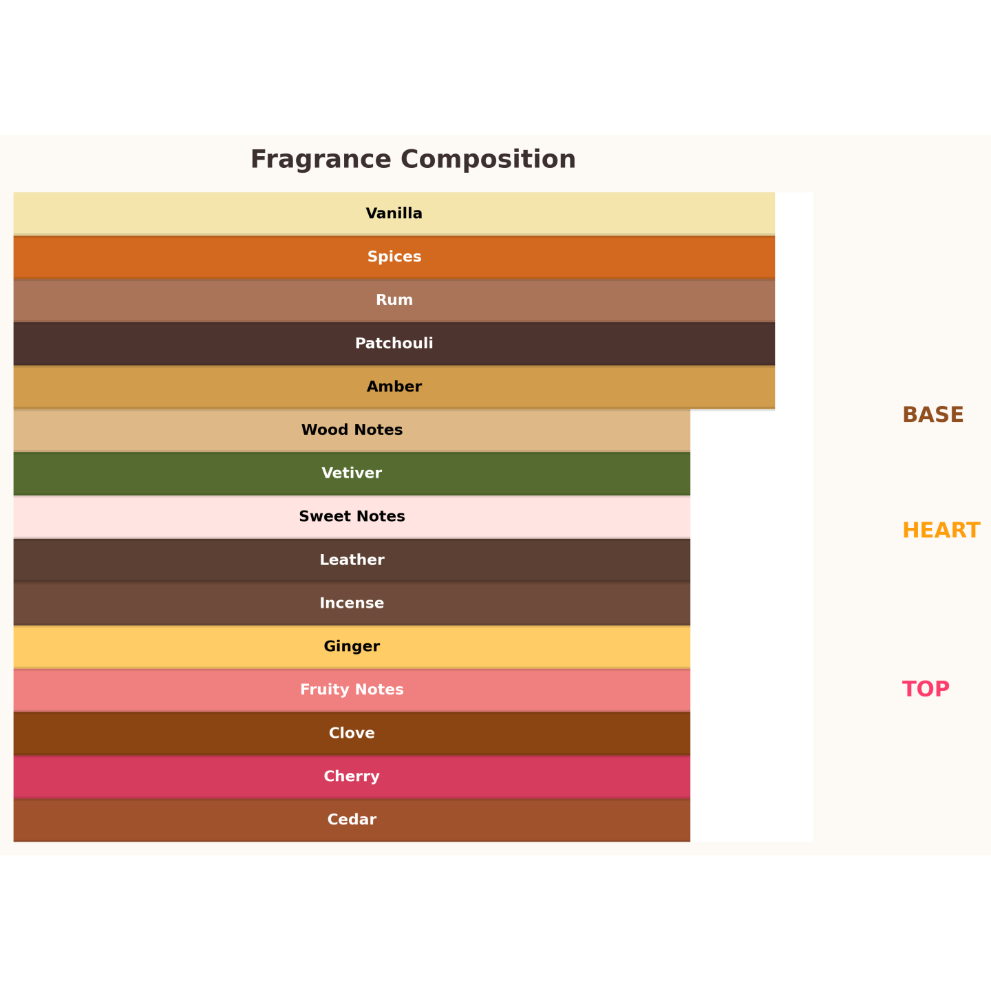 ✔ Herznoten: Rum, Gewürze, Ingwer, Nelke, Zeder, Holz
