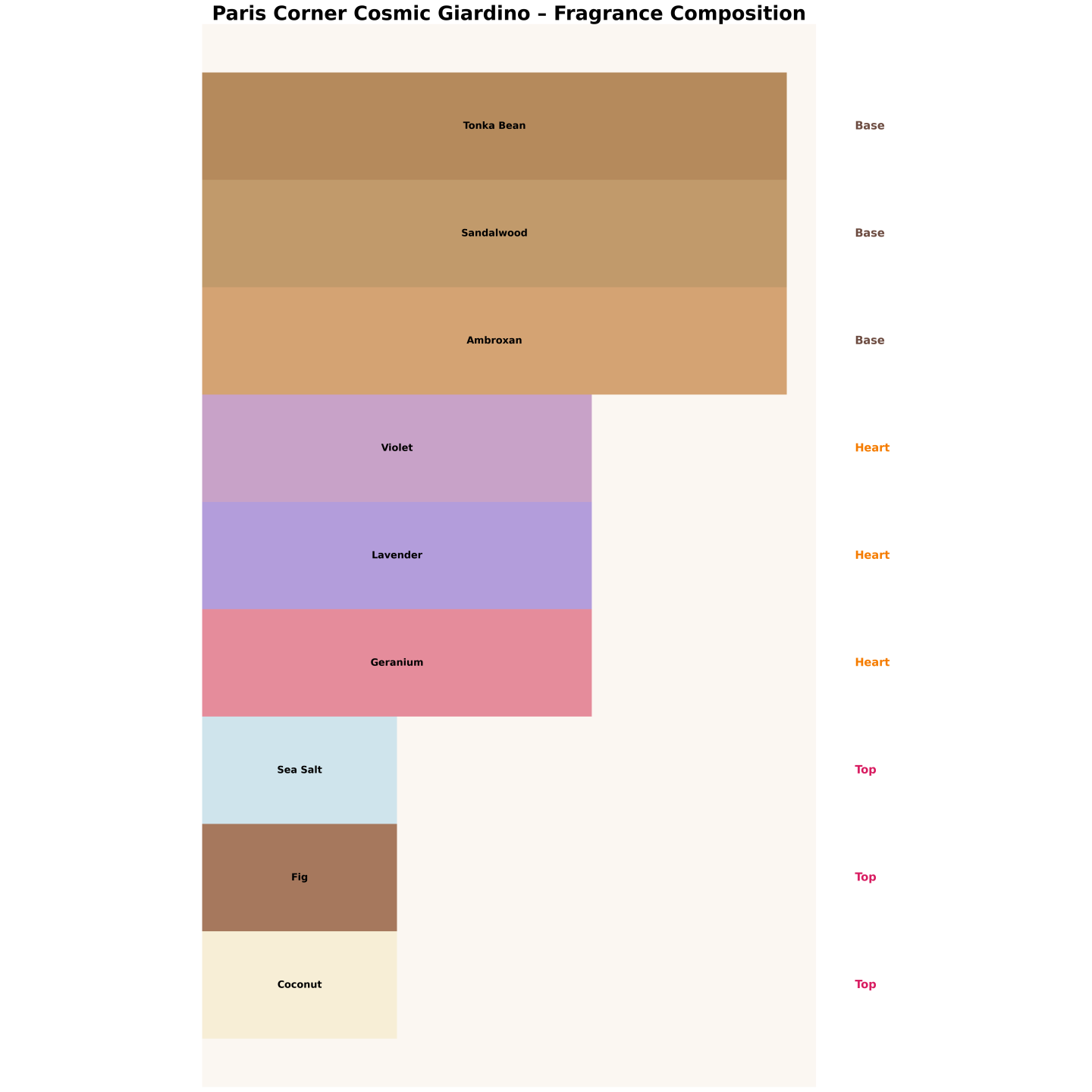 Frisch und milchig im Auftakt (Feige, Kokosnuss, Salz), aromatisch und pudrig im Herzen (Lavendel, Veilchen) und sauber, warm und modern in der Basis (Tonka, Sandelholz, Ambroxan).