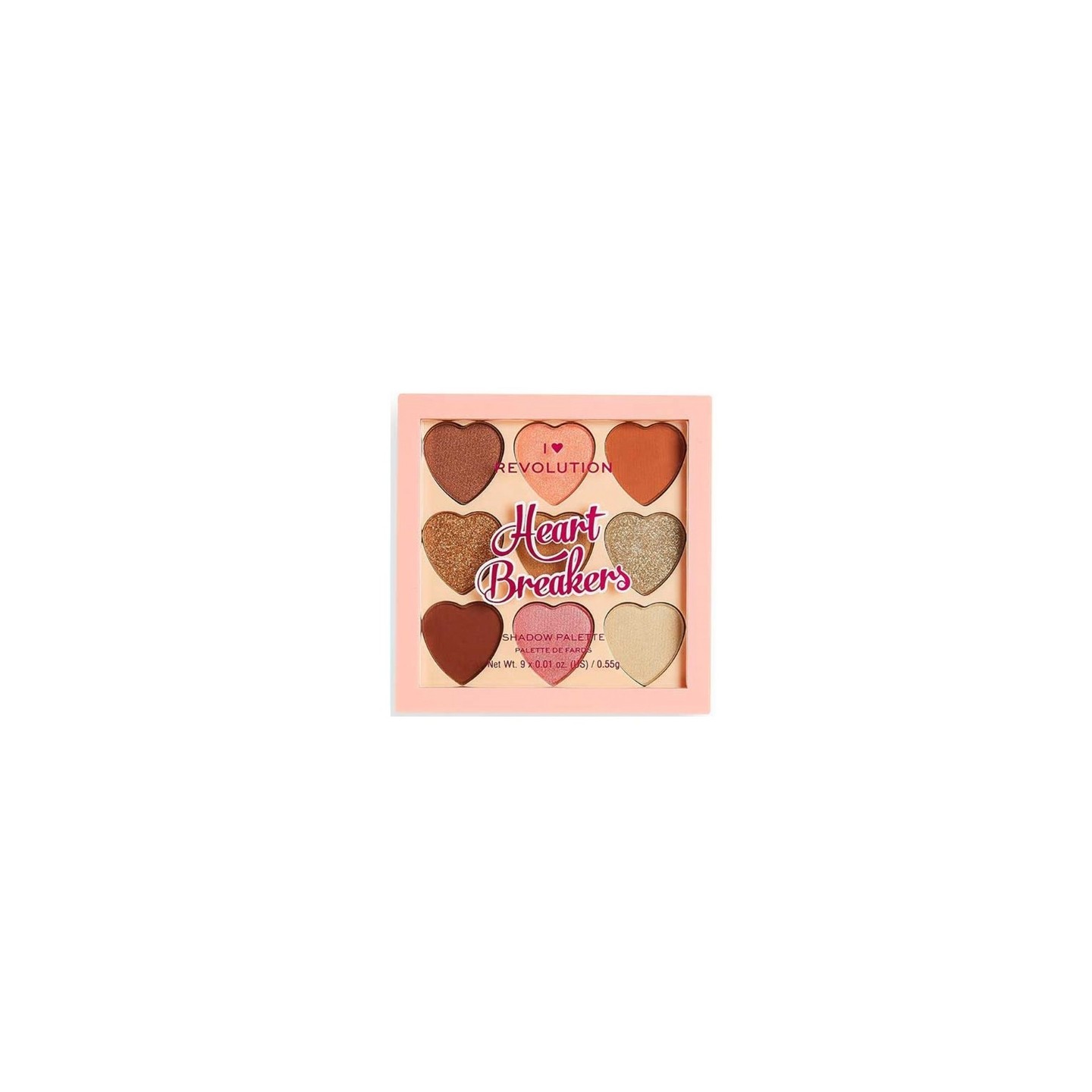 Makeup Revolution I Heart Makeup Heart Breakers Majestic Lidschatten-Palette enthält 9 Lidschatten, die matte und glänzende Oberflächen kombinieren und sich perfekt für die Erstellung verschiedener Make-ups eignen – von dezenten Alltagslooks bis hin zu ausdrucksstärkeren Abendstilen. Die Lidschatten werden in einer niedlichen, farbenfrohen Verpackung geliefert, die leicht zu transportieren ist und sich perfekt für die Handtasche oder Kosmetiktasche eignet, sodass sie sich perfekt zum Mitnehmen für unterwegs eignen. Dank der hohen Pigmentierung bieten die Lidschatten eine intensive Farbe, einfache Anwendung und Haltbarkeit, verhindern ein Zerbröckeln und Abfallen und sorgen so den ganzen Tag über für ein perfektes Aussehen. Die Heart Breakers Majestic-Palette ist die perfekte Wahl für jeden Make-up-Liebhaber, der sowohl Wert auf Funktionalität als auch Ästhetik seiner Kosmetika legt.