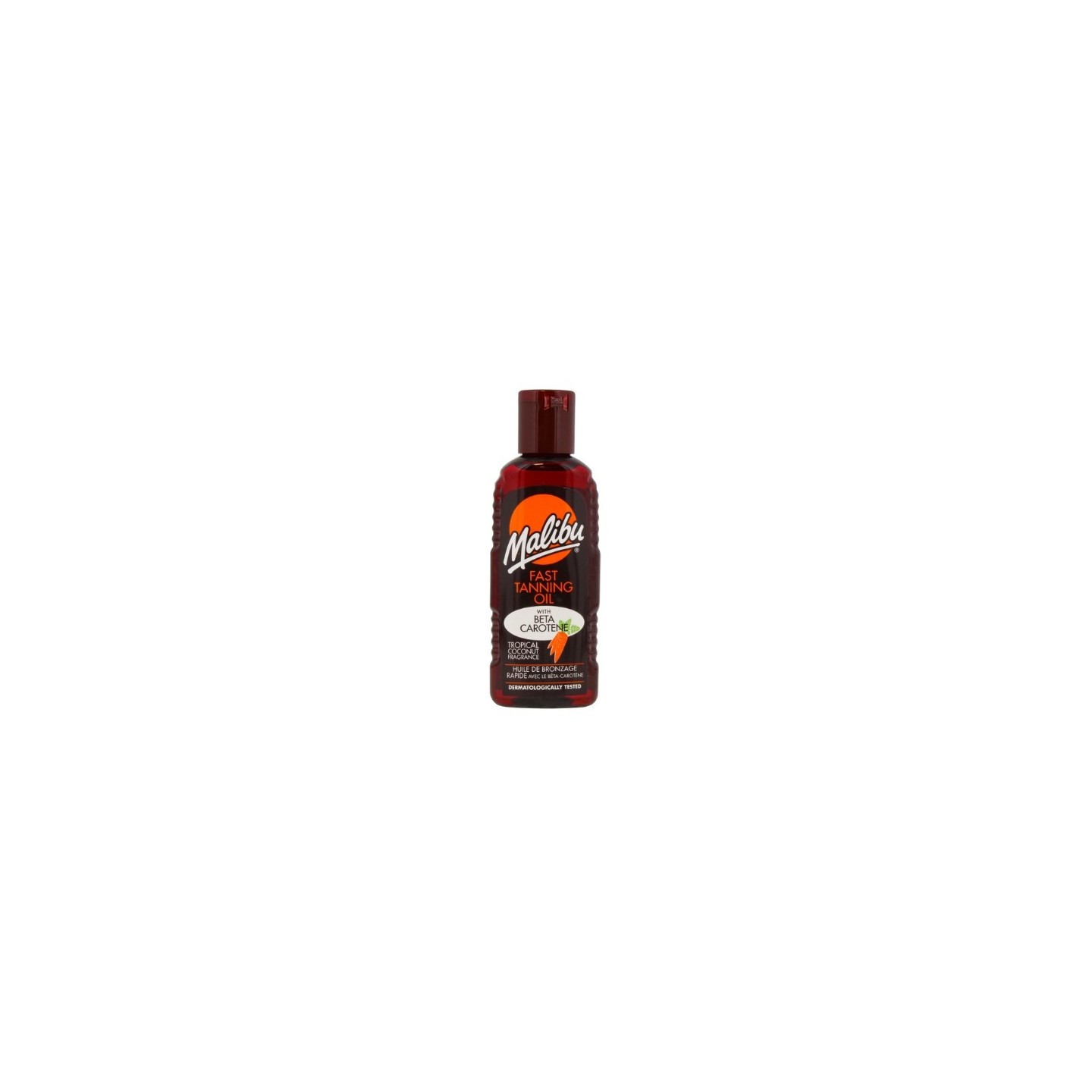 Malibu Fast Tanning Oil – Schnellbräunungsöl, das Beta-Carotin und Vitamin E enthält. Es hat dermatologische Tests bestanden. Der Duft von Kokosnuss mit tropischen Noten. Wasserfest. Nur an Menschen getestet