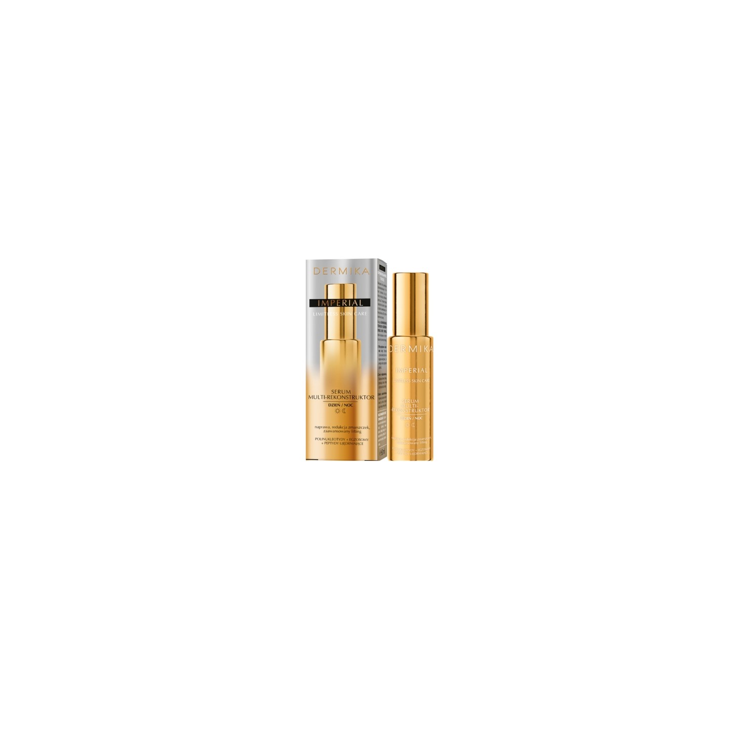 Das IMPERIAL Dermika Multi-Reconstructor Serum ist eine konzentrierte Pflege für Gesicht, Hals und Dekolleté, die speziell für Haut entwickelt wurde, die intensive Regeneration, Straffung und eine Verbesserung der Hautqualität benötigt. Seine moderne, biotechnologisch basierte Formel wirkt auf mehreren Ebenen und unterstützt die natürlichen Regenerationsprozesse sowohl tagsüber als auch nachts. Dank seiner leichten, schnell si Textur eignet sich das Serum hervorragend als Make-up-Grundlage und für eine intensive Nachtpflege. Die Haut wird straffer, dichter und sichtbar glatter und erhält ein gesundes, erholtes und frisches Aussehen.