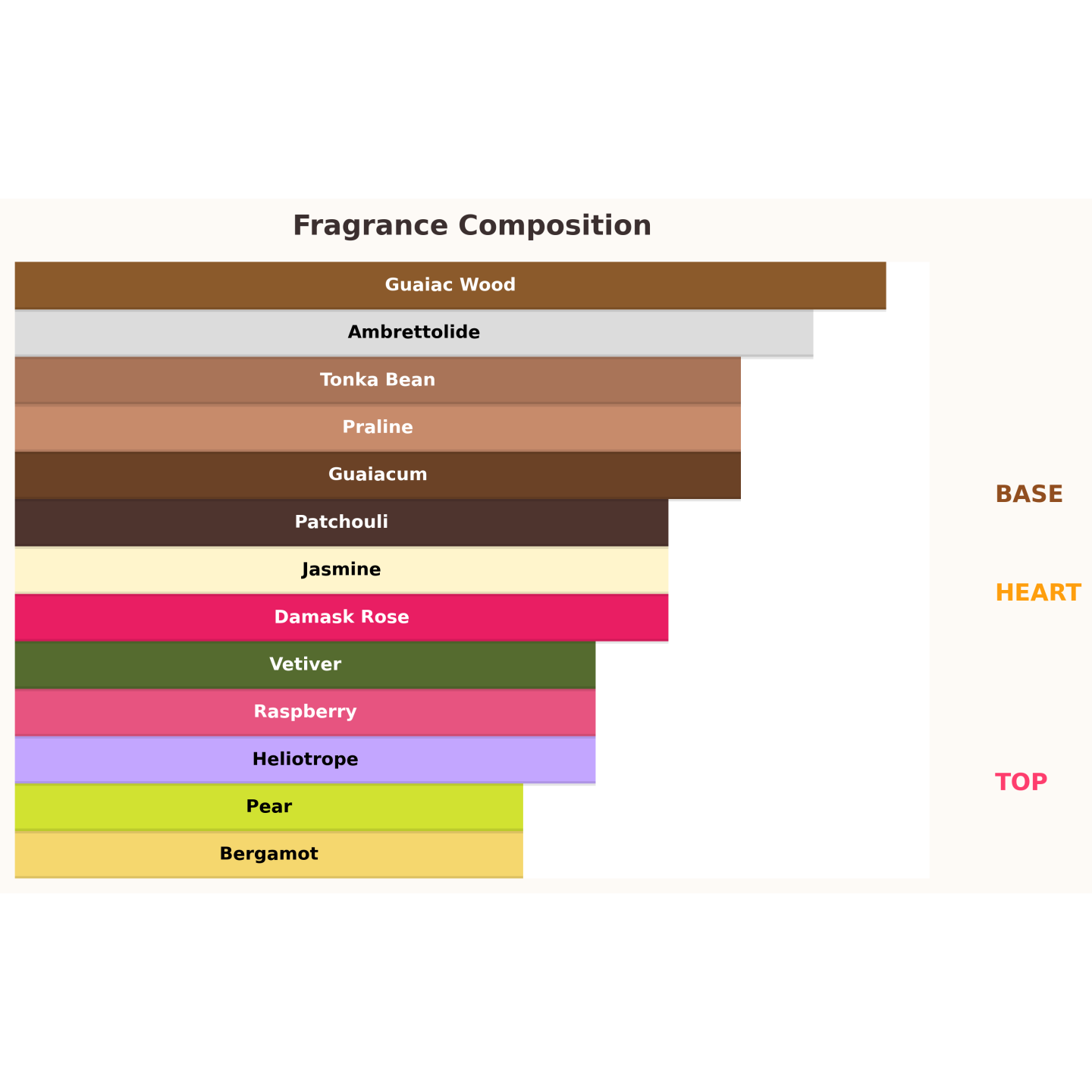 ✔ Basis: Guajakholz, Ambrettolid, Guajakholz, Tonkabohne, Patchouli, Vetiver, Birne