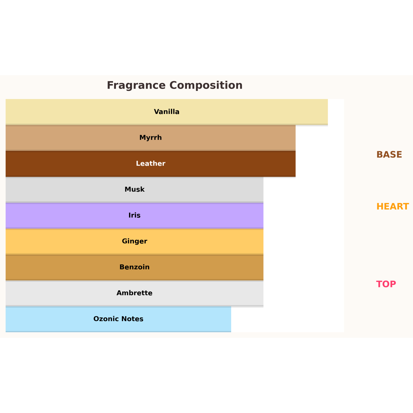 Vanilla Mood ist ein sinnliches Spiel der Kontraste: Spritziger Ingwer und moschusartig samtige Ambrette treffen auf ozonische Noten, die Leichtigkeit verleihen. Das Herz pulsiert mit harzigen Akkorden aus Myrrhe und Benzoe, begleitet von pudriger Iris. Abgerundet wird das Ganze durch weiche Vanille mit einem Hauch von Leder und warmem Moschus – eine elegant-behagliche aura für Tag und Abend.