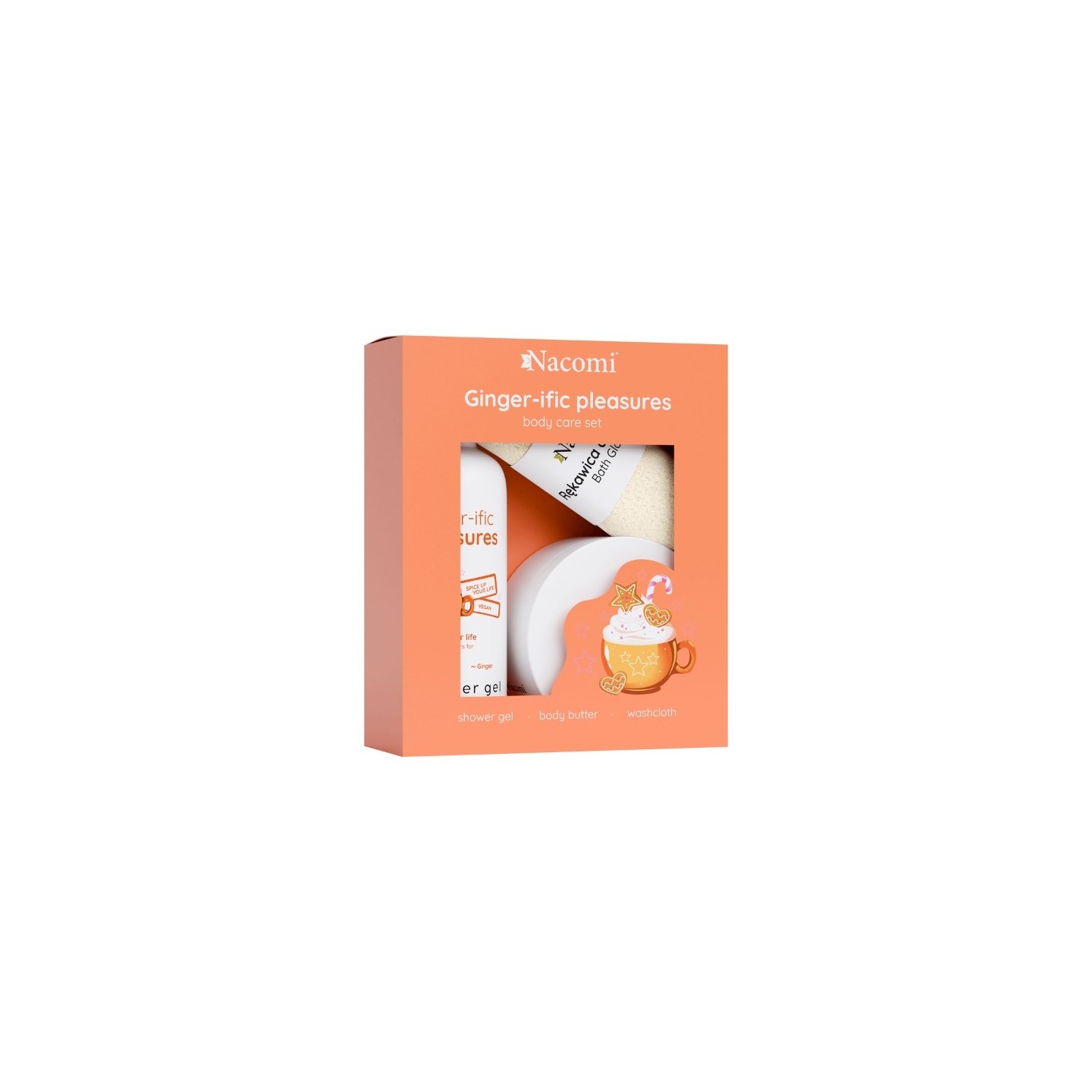 Das nach Ingwer duftende Körperpflegeset ist eine ausgezeichnete Wahl für Menschen, die eine umfassende Hautpflege und Erfrischung mit einem Hauch würzigem Aroma suchen. Das Set besteht aus drei element : Duschgel, cremiger Körperbutter und einem Badehandschuh. Jedes dieser Produkte wirkt auf die Haut, verbessert deren Zustand, Feuchtigkeit und Elastizität und hüllt sie gleichzeitig in den warmen Duft von Ingwer.