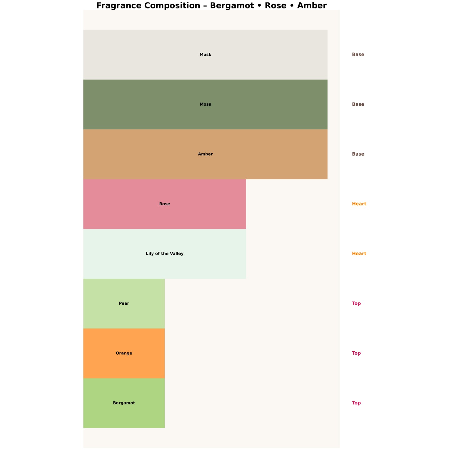 Délicat – principalement frais et floral, avec une subtile chaleur ambrée.