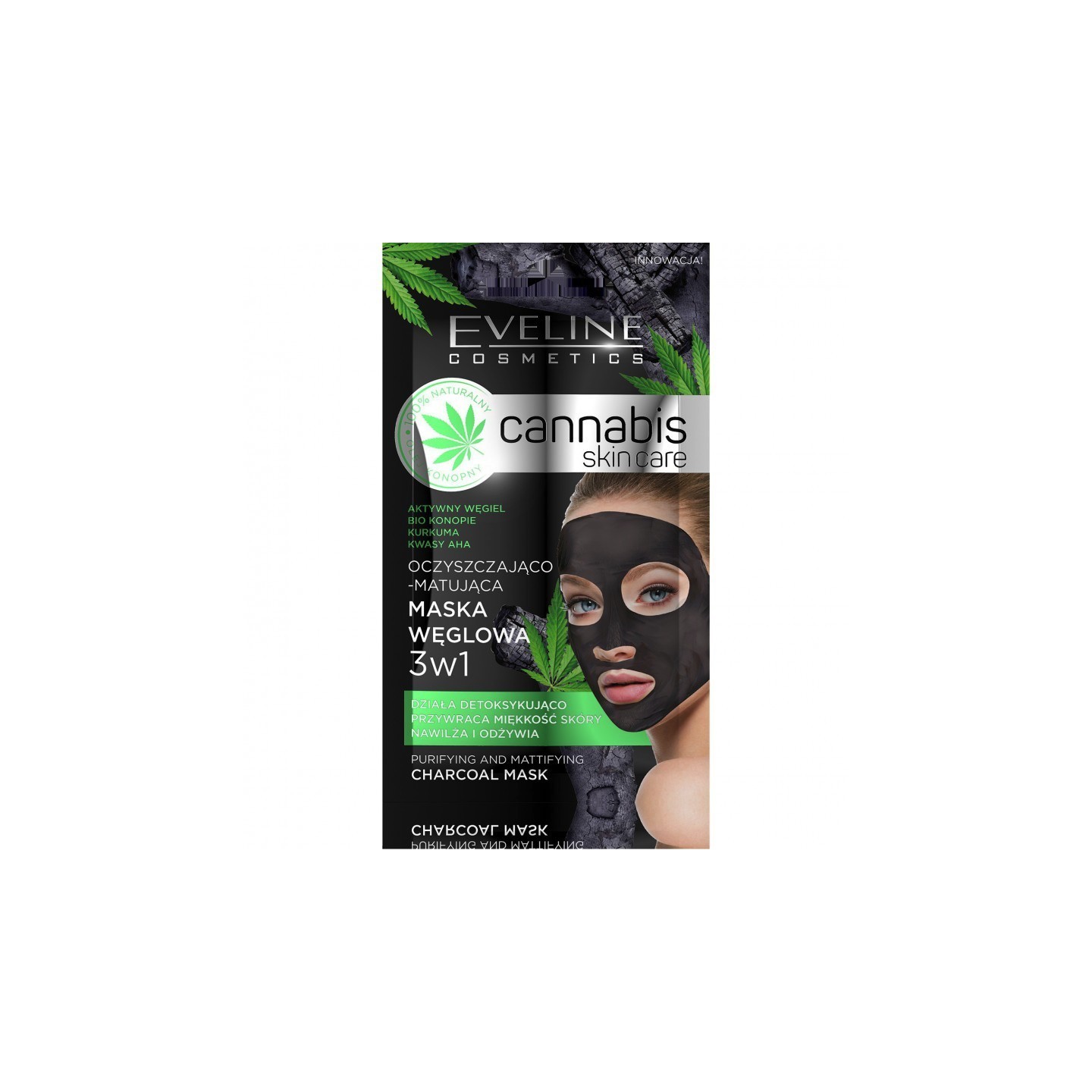 Eveline Cannabis Skincare 3-en-1 est un masque au charbon innovant alliant propriétés nettoyantes, détoxifiantes et matifiantes. Grâce à sa formule enrichie en chanvre BIO , charbon de bambou activé, curcuma et acides AHA , il procure à la peau une fraîcheur immédiate et un nettoyage en profondeur. Une utilisation régulière restaure l'éclat naturel de la peau, lui redonne un teint sain et une hydratation optimale, tout en favorisant sa régénération et sa protection antioxydante.