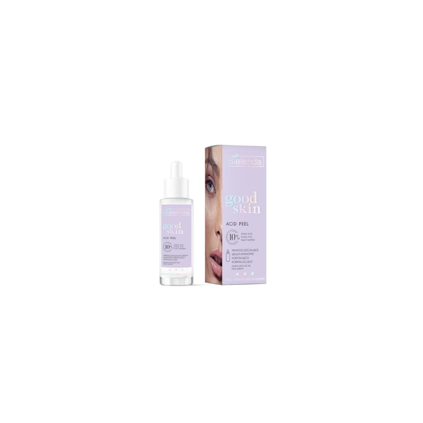 Do you struggle with oily, combination, blemish-prone skin? Reach for the micro-exfoliating, correcting and normalizing Bielenda Good Skin Acid Peel serum and your skin will thank you. The concentrated product gently exfoliates, effectively reduces skin shine, reduces the visibility of pores, helps to lighten discolorations and adds radiance to the skin. Perfectly smoothes, improves skin hydration and restores a radiant, natural look. The rich interior of our serum - see how good your skin can look: in the recipe we have placed carefully selected, very effective ingredients that will perfectly cope with difficult, imperfection-prone epidermis. In addition, our serum does not contain a fragrance - its smell is characteristic of the ingredients used.