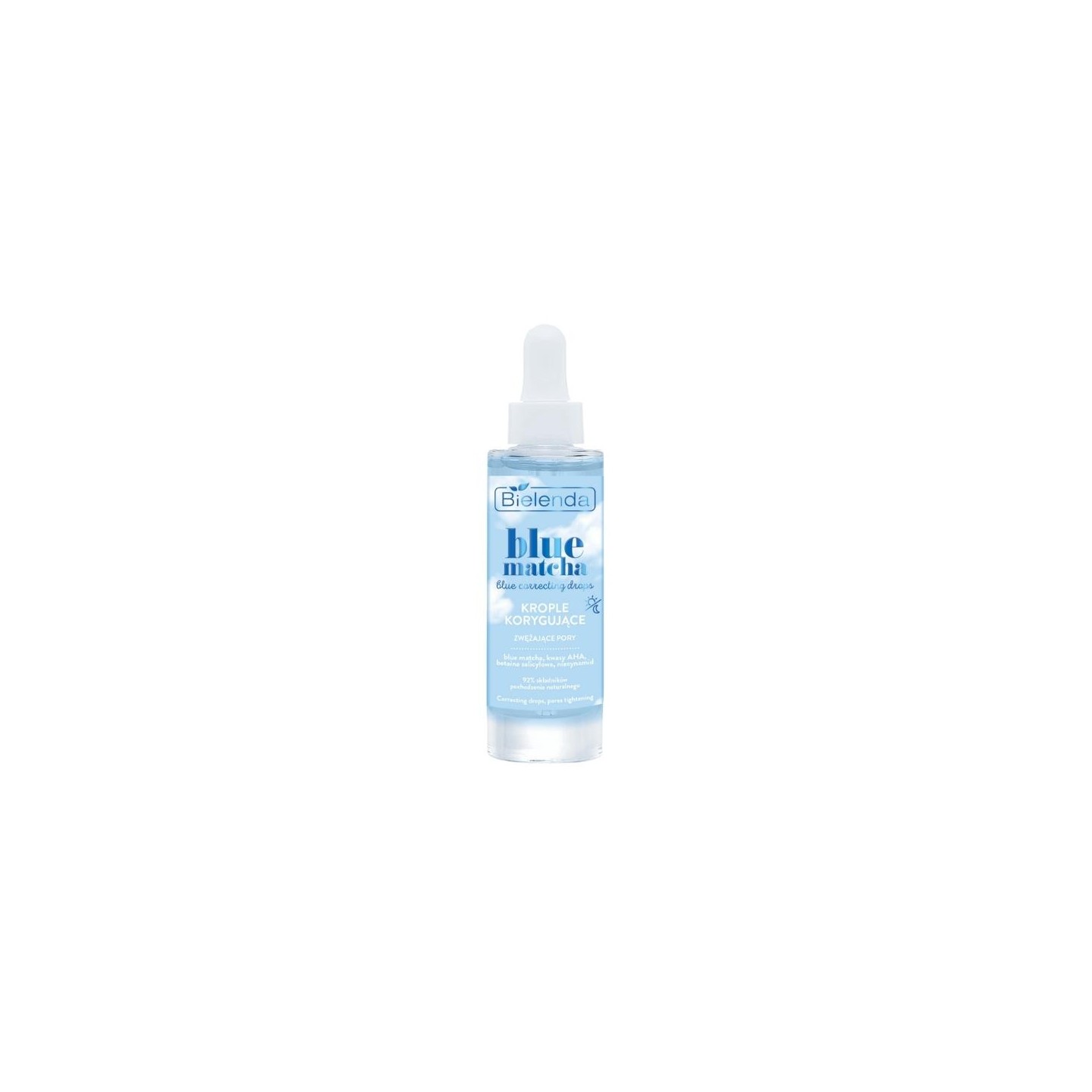 Drops correcting and tightening pores, with a light, vegan formula, which will prove themselves in the daily care of all skin types, especially those with local imperfections. You will be delighted with their gel consistency and effective action. Drops smooth and refresh the skin, reduce the visibility of pores and imperfections, improve hydration, skin condition and its appearance. They have a natural, delicate blue color, which results from the use of the blue matcha ingredient, give the effect of refreshed skin, reduce the visibility of pores and imperfections, are light, do not burden the skin