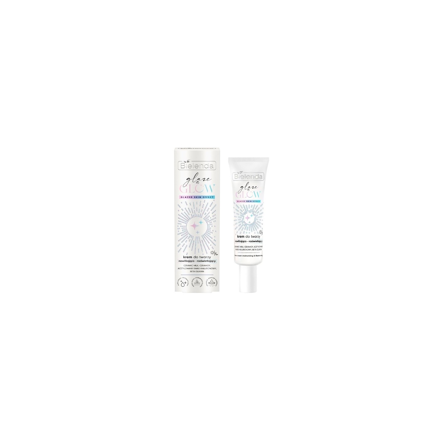 Moisturizing and brightening cream is an advanced formula that combines intensive hydration with the effect of radiant, smooth skin. Thanks to carefully selected active ingredients, the product not only effectively moisturizes the skin, ale also restores its healthy glow, providing the effect of "glazed skin", i.e. an ultra-brightened surface. The cream formula has been enriched with Ceramic Milk , a unique combination of porcelain flower extract and rice milk, which gives the skin a silky smoothness and a healthy, radiant look. Ceramides intensively regenerate the skin's lipid barrier, protecting it from moisture loss and smoothing the epidermis, while acetylated hyaluronic acid deeply moisturizes, binding water in the skin and improving its elasticity. Additionally, beta-glucan soothes irritations, supports skin regeneration and strengthens its natural protection, providing a feeling of comfort and long-lasting ego . The light, milky-creamy consistency of the cream makes the product perfectly si , leaving no greasy film or feeling of heaviness on the skin. After the first use, the complexion gains the effect of a healthy glow and smoothness, and regular use makes it more moisturized, elastic and radiant. The cream is perfect as daily care for dry and dull skin that needs intensive regeneration and moisture. Using the product brings visible effects - the skin becomes silky soft, smooth and full of natural glow.