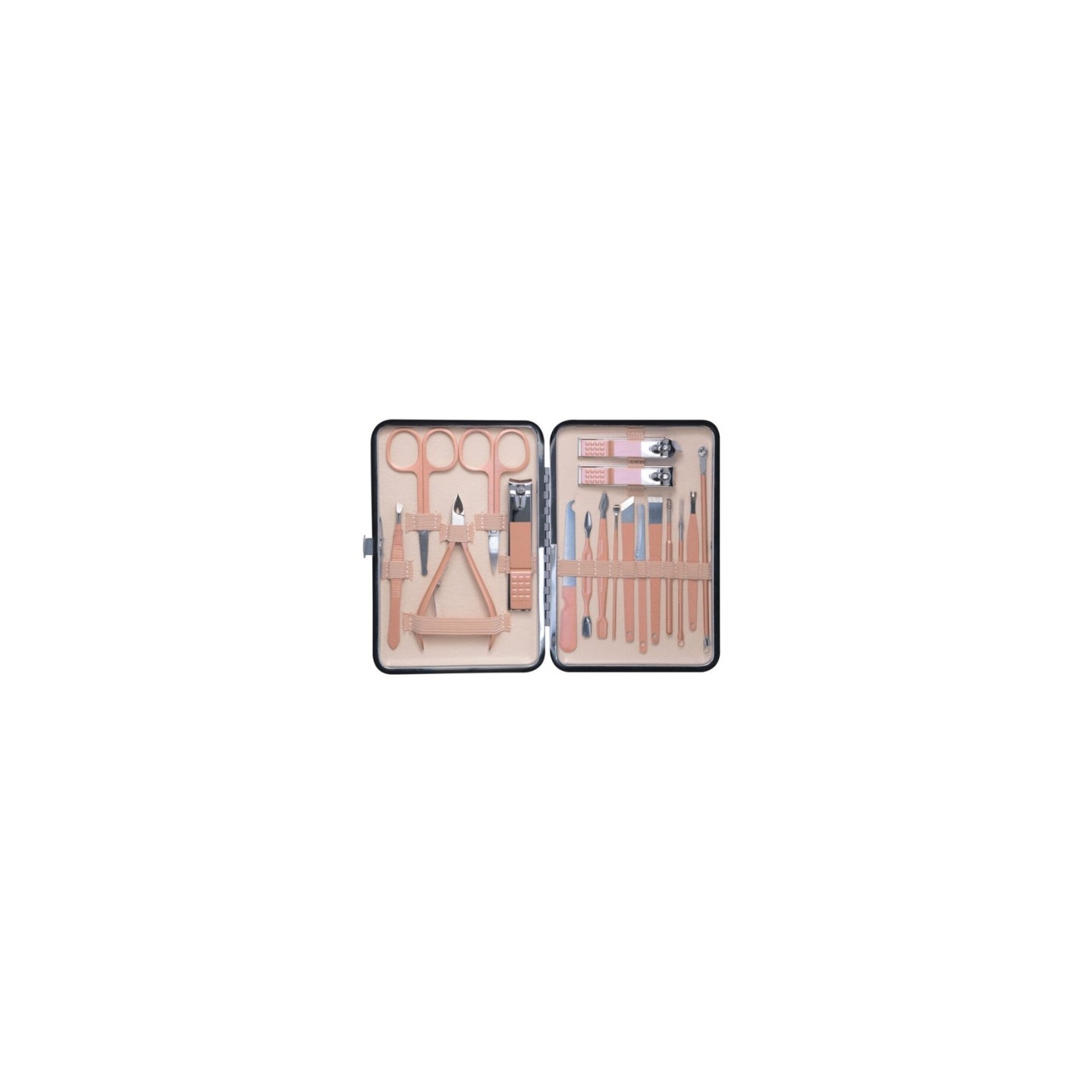 • A set of 18 cosmetic accessories for manicures, pedicure and facial treatments in a case