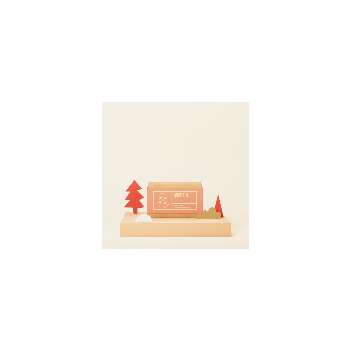 Winter Soap is the essence of Christmas atmosphere enclosed in a cube. Its spicy scent is reminiscent of the aroma of freshly baked cookies and warming spices that fill the house on winter evenings. It smells so delicious that it almost begs to be bitten - ale instead we recommend taking a bath and letting your skin draw on its nourishing properties. The soap base is made of the highest quality vegetable oils: coconut, olive oil, shea butter and castor oil. This proven blend provides intensive hydration and nourishment to the skin, supporting its regeneration and elasticity. Thanks to the castor oil, the cube produces a thick, creamy foam that cleanses perfectly, while leaving the skin soft and smooth. The red French clay, present in the formula, adds a deep, Christmas color to the soap, but also has a nourishing and regenerating effect on the skin. It is rich in minerals that help rebuild it and improve its elasticity. The unique aroma of the soap is determined by a mixture of essential oils: spruce, orange and cinnamon. These warm, spicy notes of citrus-resinous scent introduce a state of relaxation and blissful relief, making daily care a small ritual of relaxation. Particles of macerated spices, such as anise, cardamom or cinnamon, additionally support the peeling effect, gently massaging the skin and stimulating microcirculation.