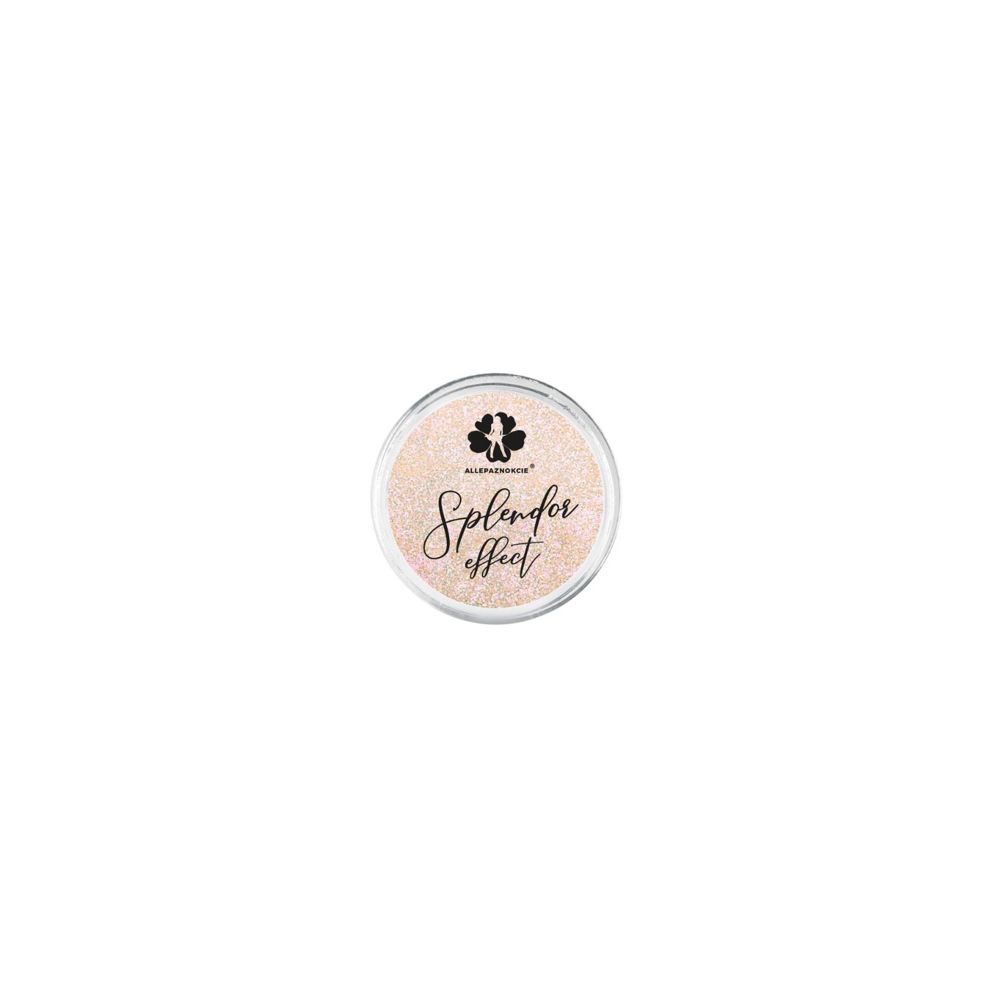Perform any styling as standard: hybrid, gel, acrylic gel, etc. Apply top over the whole thing, e.g. Doctor top; sprinkle with dust before hardening. After the Splendor top coat has hardened (30 seconds with a 48W dual led lamp), remove excess dust with a soft brush or a delicate brush.