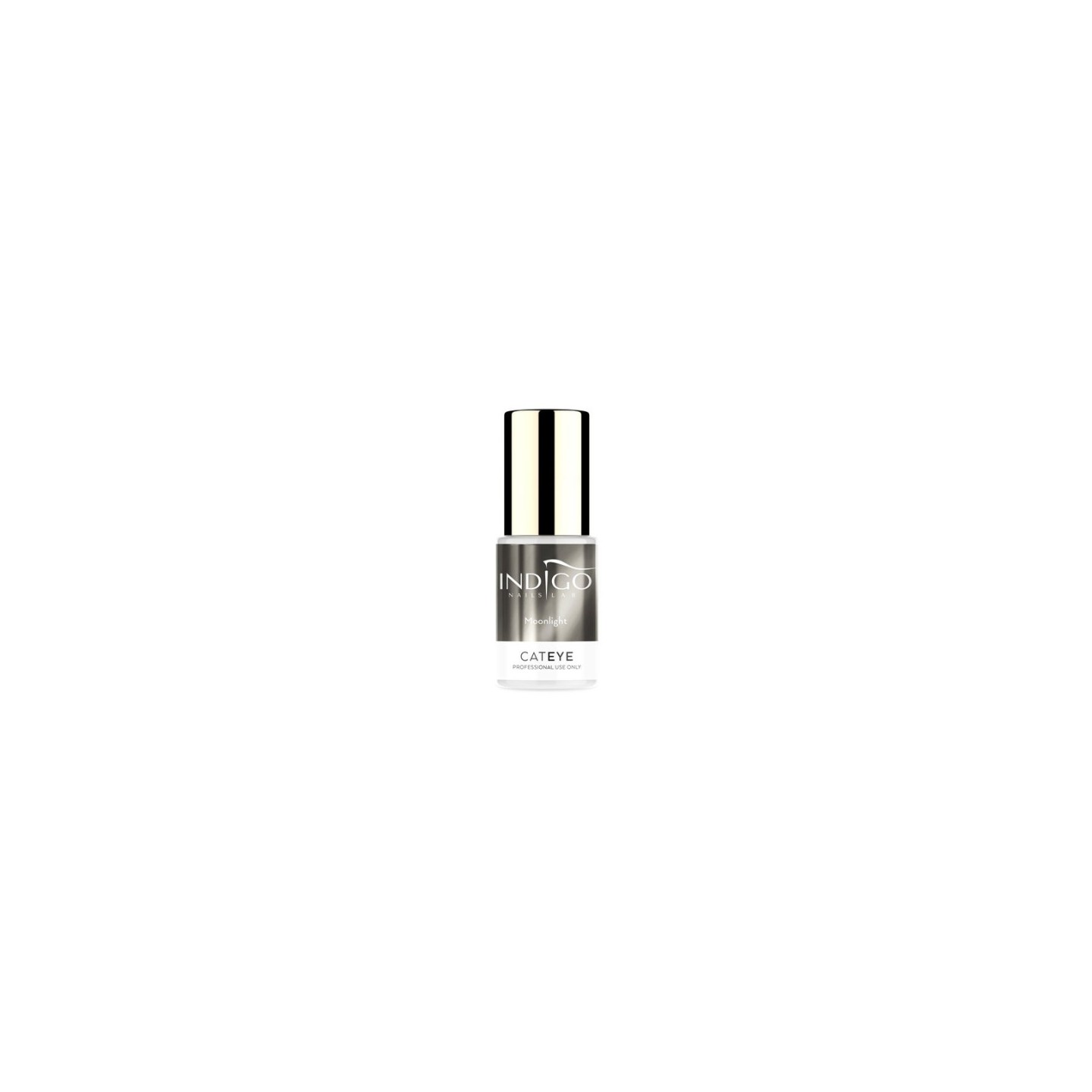 Make a gel or acrylic styling or build up your nails with two layers of Protein Base. Evenly apply Gel Polish in the selected dark color on the nails. Cure in the MultiLed lamp for 30 seconds. Apply the Cat Eye Gel Brush on the entire surface of the nail, apply the magnet at a distance of 3-5mm. After 5-10 seconds, when a metallic streak forms on the surface, we cure the product in the lamp. After removing your hand from the lamp, secure the styling with a top, e.g. TipTop, remembering to protect the free edge area. Cure again in the MultiLed lamp for 30 seconds.