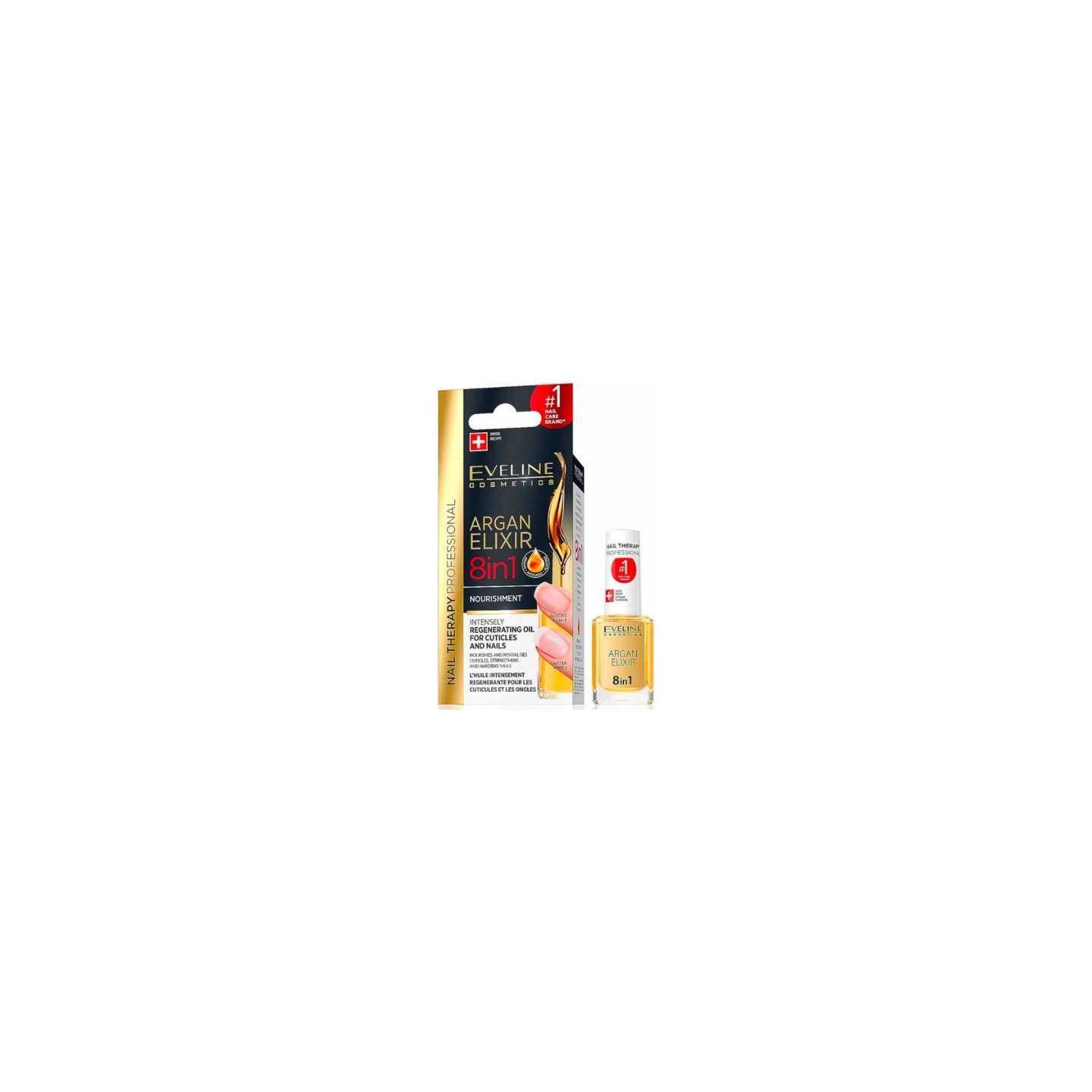 Argan Elixir 8in1 is een intensieve, luxueuze regeneratie van nagels en nagelriemen, met behulp van arganolie die rijk is aan voordelen. Dit geconcentreerde product, in de vorm van een samenstelling van snel intrekkende argan-, avocado- en amandelolie, is speciaal ontwikkeld om nagels en nagelriemen effectief te regenereren. Zorgt voor een optimale verzorging van de droge, beschadigde huid rond de nagels en zwakke, broze nagels. Het effect van gebruik is gladde, schadebestendige en glanzende nagels, evenals een zachte en gezondere huid, vrij van droge en gebarsten structuur.
