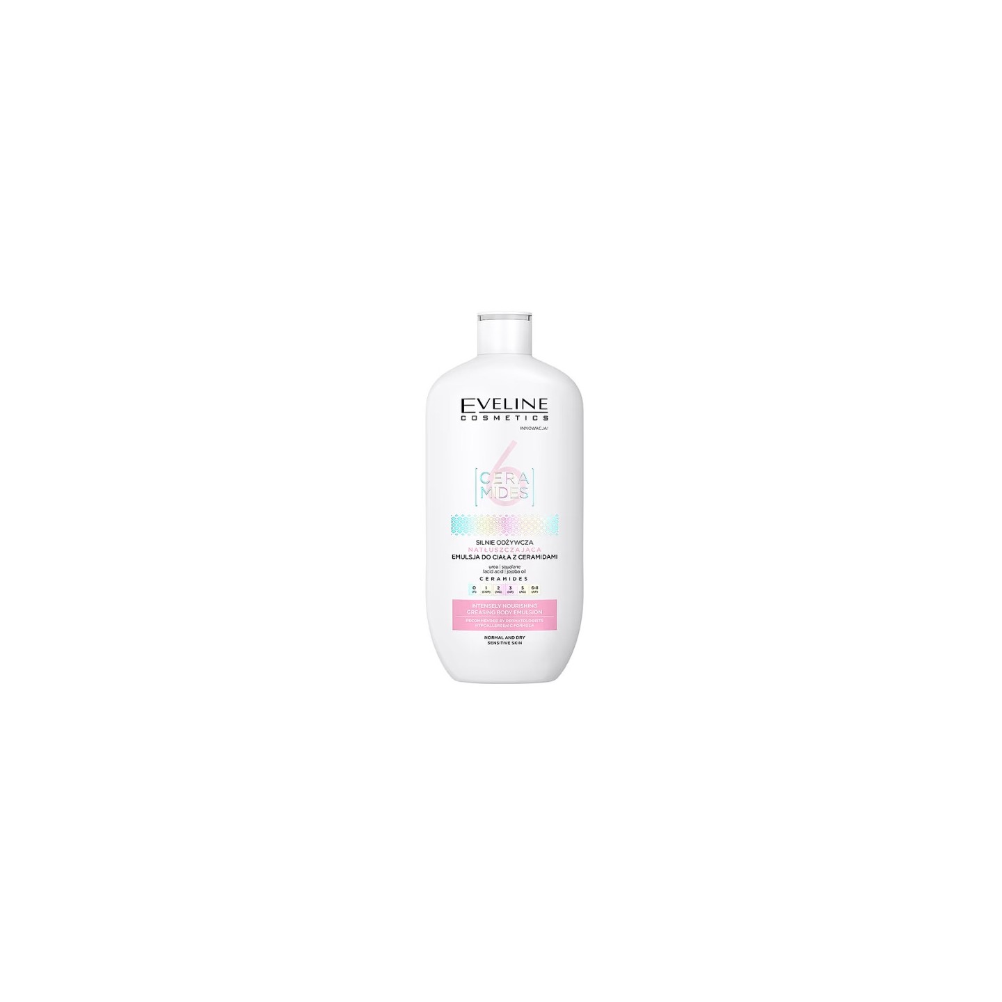 Hypoallergene Body Emulsion Series 6 Ceramides is een intensief voedende en oliënde cosmetica verrijkt met waardevolle ingrediënten zoals ureum, squalaan, melkzuur en jojoba-olie. Deze emulsie voorziet de huid van het lichaam van diepe hydratatie, voeding en een gevoel van opluchting. De actieve ingrediënten worden snel opgenomen en ondersteunen het behoud van een optimaal niveau van hydratatie. Het resultaat is een huid die zacht en glad aanvoelt. Dankzij het gehalte aan maar liefst 6 ceramiden zorgt deze formule voor een perfect gevoede en geregenereerde huid. De emulsie is gemakkelijk in gebruik, trekt snel in en laat een comfortabel gevoel achter.