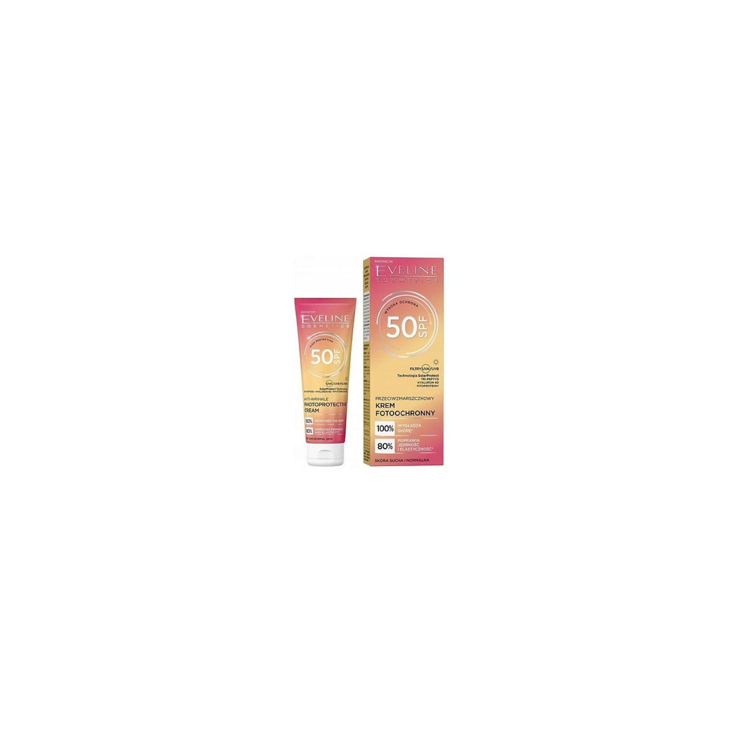 Deze antirimpelcrème SPF 50 is een geavanceerd dagverzorgingsproduct voor de droge en normale huid, dat beschermende en regenererende eigenschappen combineert. Dankzij de nieuwe generatie breedspectrumfilters beschermt de crème de huid effectief tegen UVA- en UVB-straling en voorkomt het huidveroudering door zonlicht. De formule is verrijkt met actieve ingrediënten die celvernieuwing en collageensynthese ondersteunen, si de huid steviger, elastischer en gladder wordt. Tripeptide-1 ondersteunt huidregeneratie en verbetert de textuur, waardoor rimpels minder zichtbaar worden. 4D-hyaluronzuur zorgt voor hydratatie op meerdere niveaus, verbetert de elasticiteit van de huid en voorkomt vochtverlies. De formule bevat ook vitamine A, C en E, die antioxiderende eigenschappen hebben, huidregeneratie ondersteunen en de teint egaliseren. Daarnaast ondersteunen fytoproteïnen, amber en zoethoutextract de huidregeneratie, verbeteren ze de stevigheid van de huid en kalmeren ze de huid. De crème heeft een lichte, aangename consistentie, voelt niet zwaar aan op de huid en is perfect te gebruiken als make-upbasis.