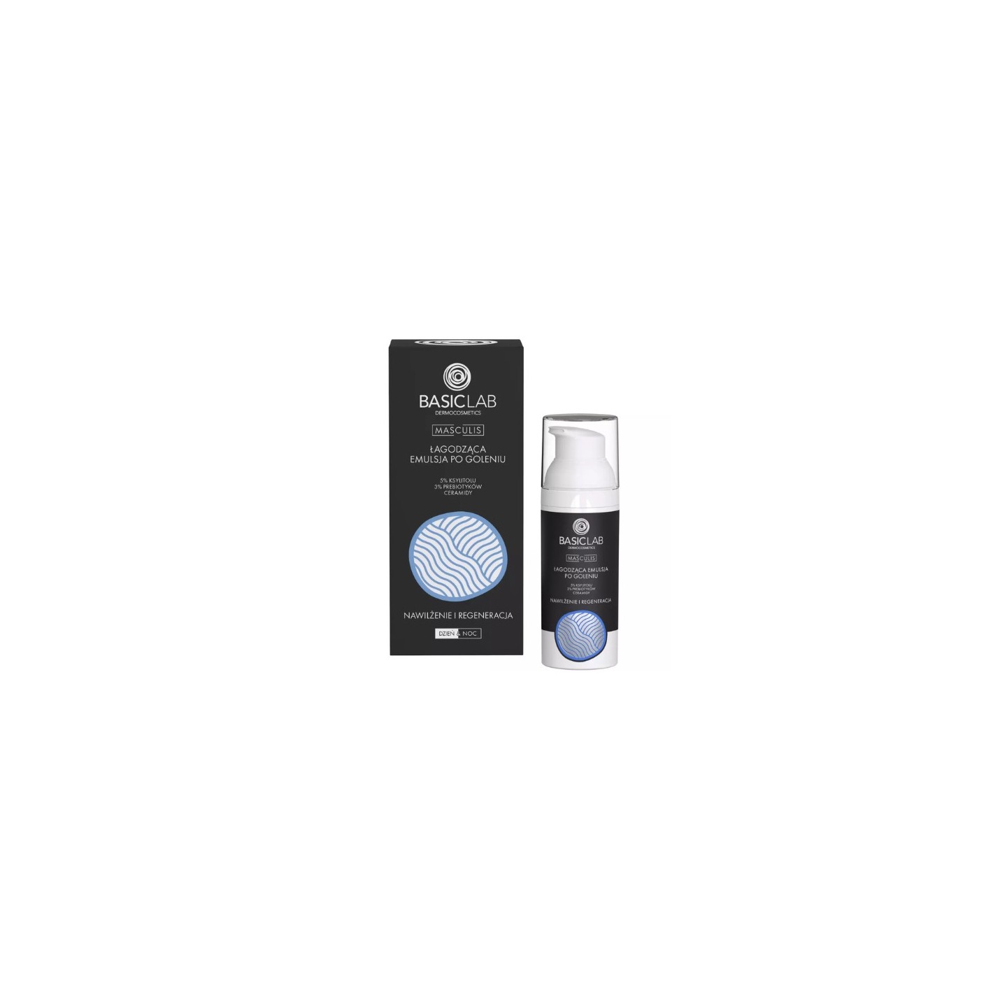BasicLab Masculis verzachtende aftershave-emulsie Hydraterend en regeneratie 5 % Xylitol en 3% Prebiotica 50 ml