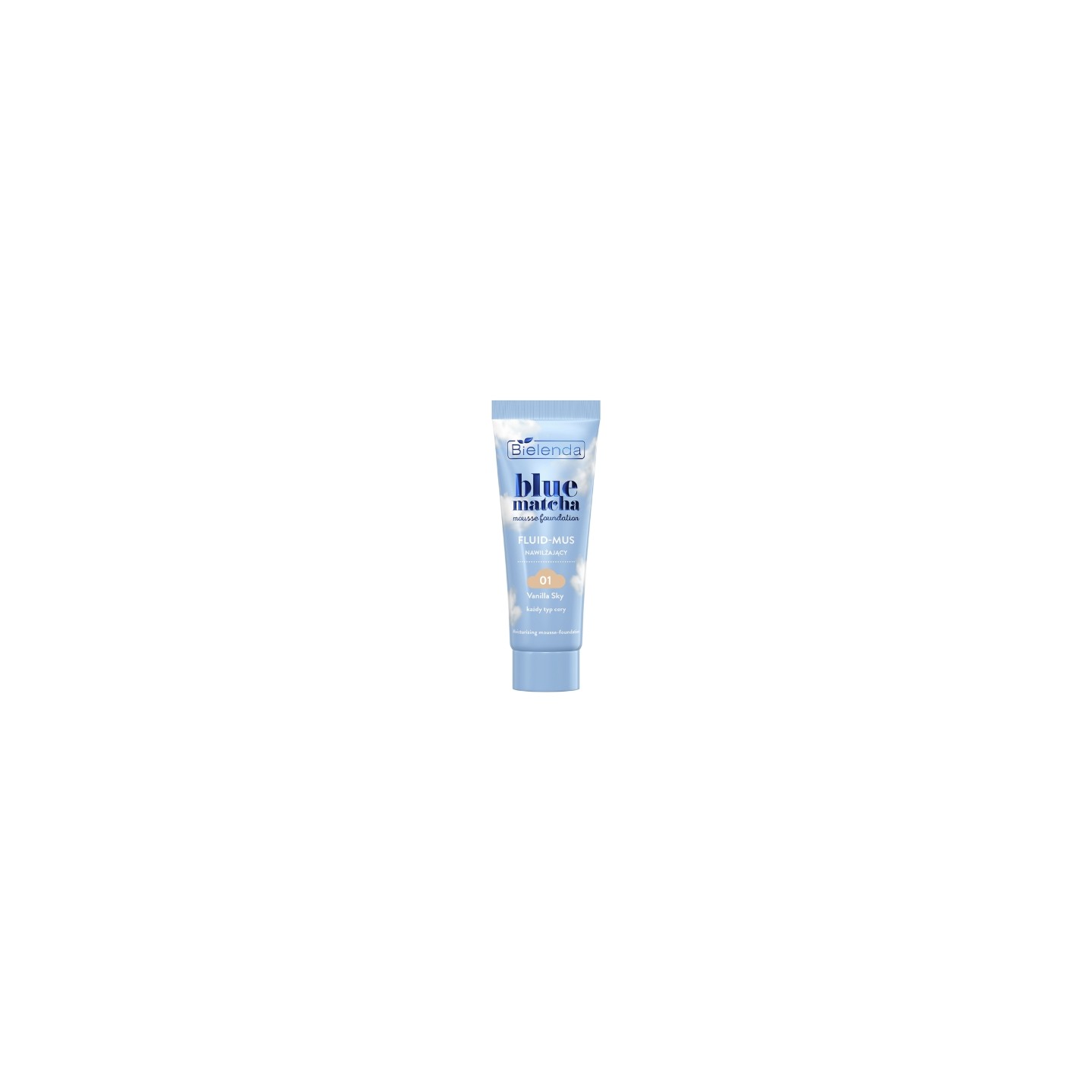 Hydraterende vloeibare mousse 01 Vanilla Sky – veganistisch, met Blue matcha en niacinamide. Licht als een wolkje, creëert het een glow effect, hydrateert, verzacht en egaliseert de teint van een porseleinen huid.