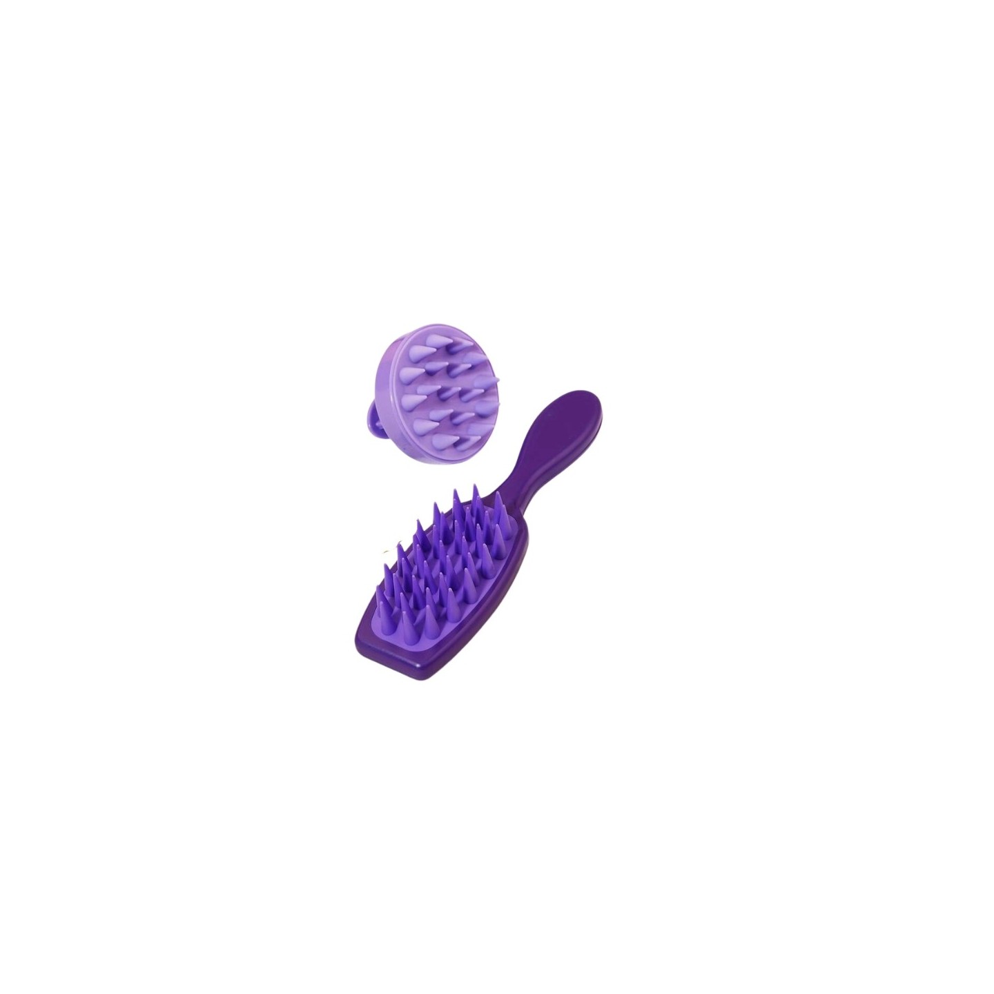 De set bevat twee veelzijdige hulpmiddelen in een elegante paarse kleur, ideaal voor de dagelijkse haar- en hoofdhuidverzorging: een haarwas- en hoofdhuidmassageborstel en een hoofdhuidmassageapparaat. Deze set biedt uitgebreide verzorging en combineert effectieve reiniging met een ontspannende massage.