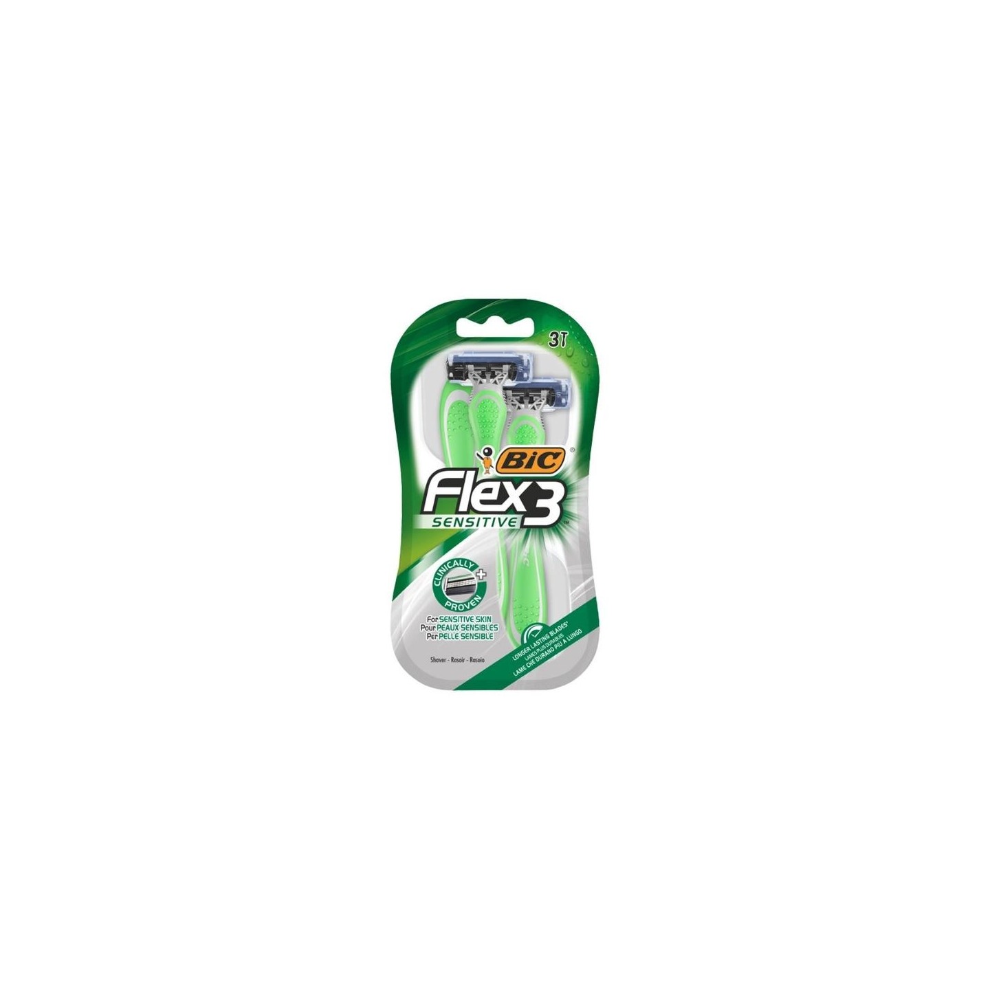 Het Flex 3 Sensitive-scheermes is een scheermes met zwevende kop met 3 Nano Tech-mesjes die onafhankelijk en beweegbaar zijn, waardoor afspoelen supergemakkelijk is. De mesjes passen zich individueel aan de contouren van je gezicht aan voor een gladde scheerbeurt. Ze minimaliseren irritatie en roodheid. Het hoofd heeft een aanpassingsbereik van 30 graden aan de vorm van het gezicht. Vochtinbrengende strip met natuurlijke ingrediënten voor beter glijden is aangepast aan de gevoelige huid. Gebogen neongroen rubber voor betere scheercontrole.
