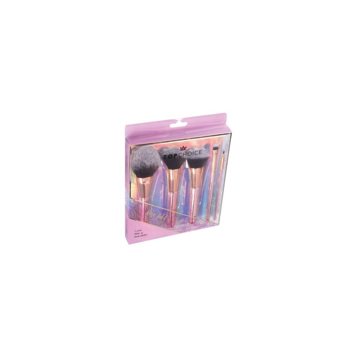 Een perfect op elkaar afgestemde set basis make-up kwasten. Synthetische, fluweelzachte, tweekleurige borstelharen zijn gemakkelijk schoon te maken en minder vatbaar voor vervorming dan natuurlijke haren. Het sublieme design in glamour maakt indruk met de meest modieuze kleur goud met een roze tint en metallic glans voor vele seizoenen, en een perfecte afwerking met het bedrijfslogo op de borstelgreep. De set is gericht op liefhebbers van make-up en damesgadgets met hoge esthetische en gebruikswaarden. Een set van vijf make-upkwasten bevat: - Kwast voor losse, minerale en geperste poeders - Kwast voor blush, bronzer en highlighter - Poeder- en bronzerkwast - Schaduwkwast - Schaduwkwast