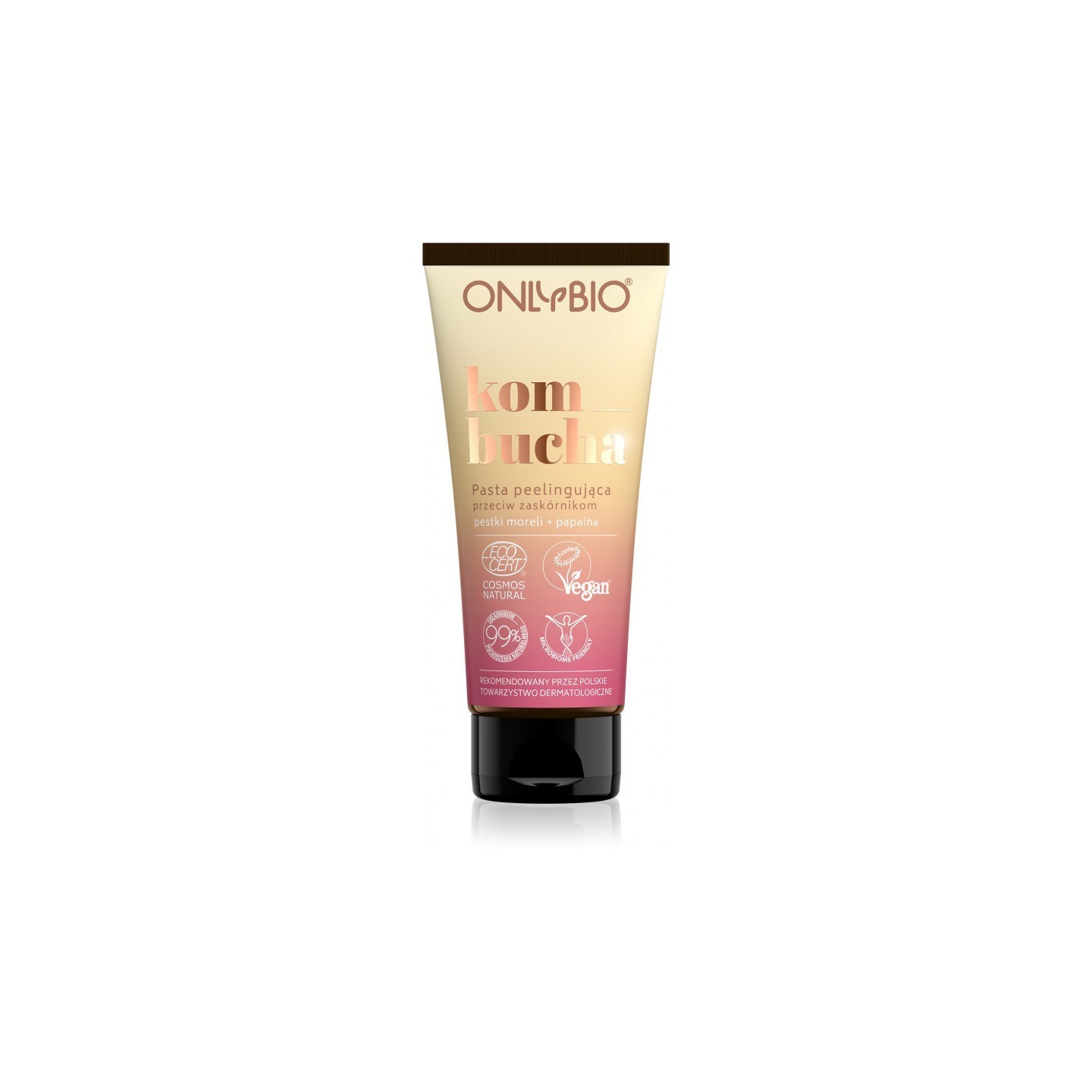Peelingpasta tegen mee-eters met kombucha, abrikozenpitten, papaïne en calendula reinigt diep, ontstopt de poriën en minimaliseert hun uiterlijk.
