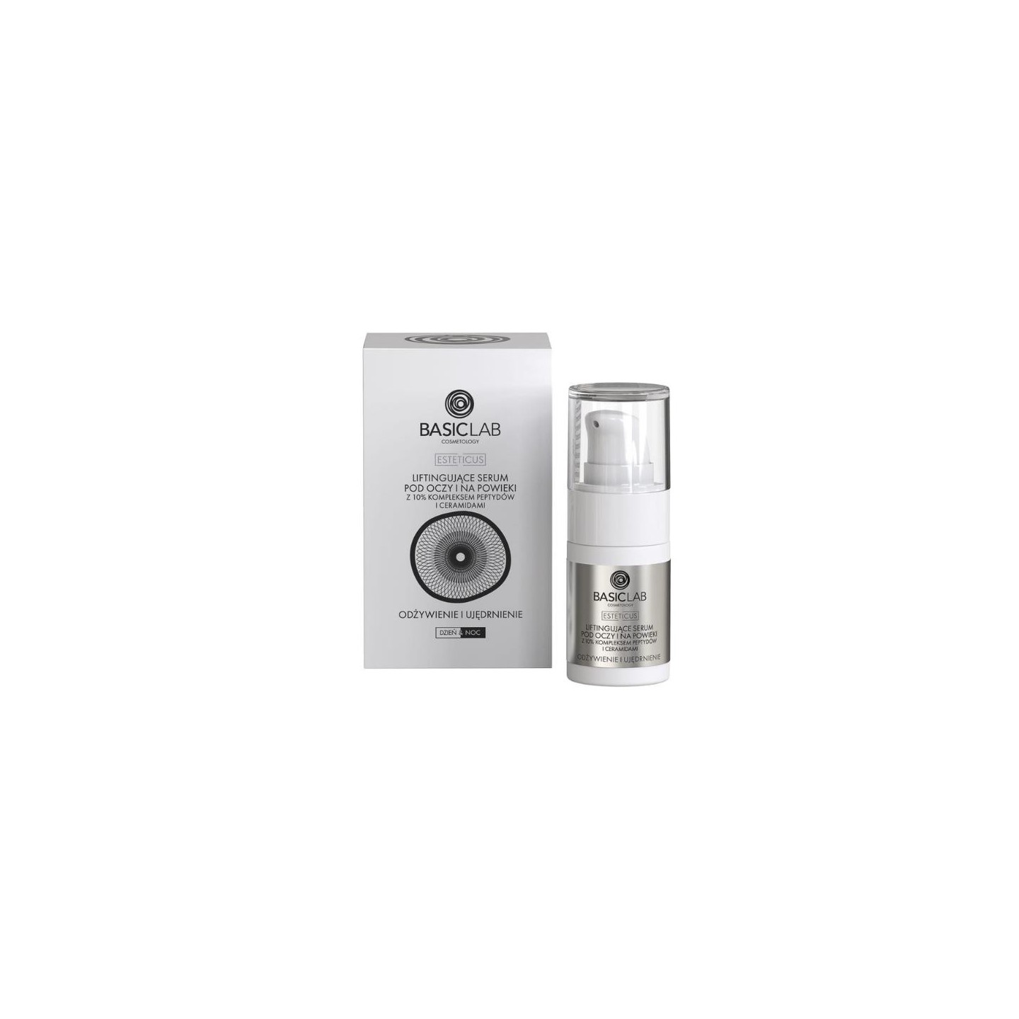 Dermatologisch serum voor ogen en voor de oogleden in de vorm van een voedende emulsie op basis van een 10% complex van erkende en effectieve peptiden , ceramiden en Albicia-extract . Ontworpen voor dag en nacht gebruik.