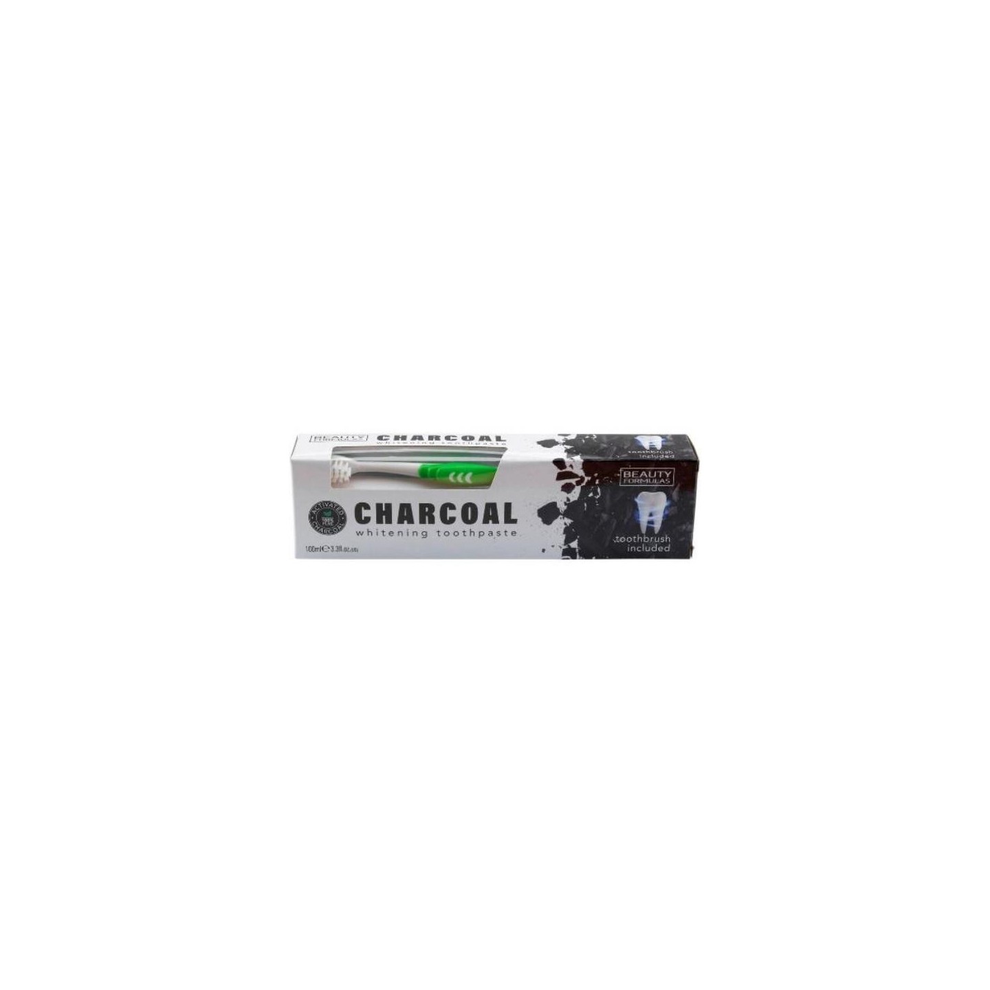 Tandpasta met geactiveerde houtskool verwijdert effectief voedselresten en vermindert verkleuring en helpt de vorming van tandplak tegen te gaan. Actieve kool is een actief ingrediënt met hoge absorptie-eigenschappen. Verwijdert afzettingen die het gevolg zijn van de consumptie van kleurende voedingsmiddelen, bijv. koffie, rode wijn, thee. Dankzij de inhoud herstelt de tandpasta de natuurlijke kleur van de tanden, zonder verkleuring. Door het gebruik ervan kunt u een goede mondhygiëne behouden, een gevoel van reinheid en frisheid geven. De tandenborstel die aan de tandpasta is bevestigd, heeft een geprofileerde handgreep met een speciaal antislipoppervlak waardoor hij gemakkelijker in de hand te houden is.