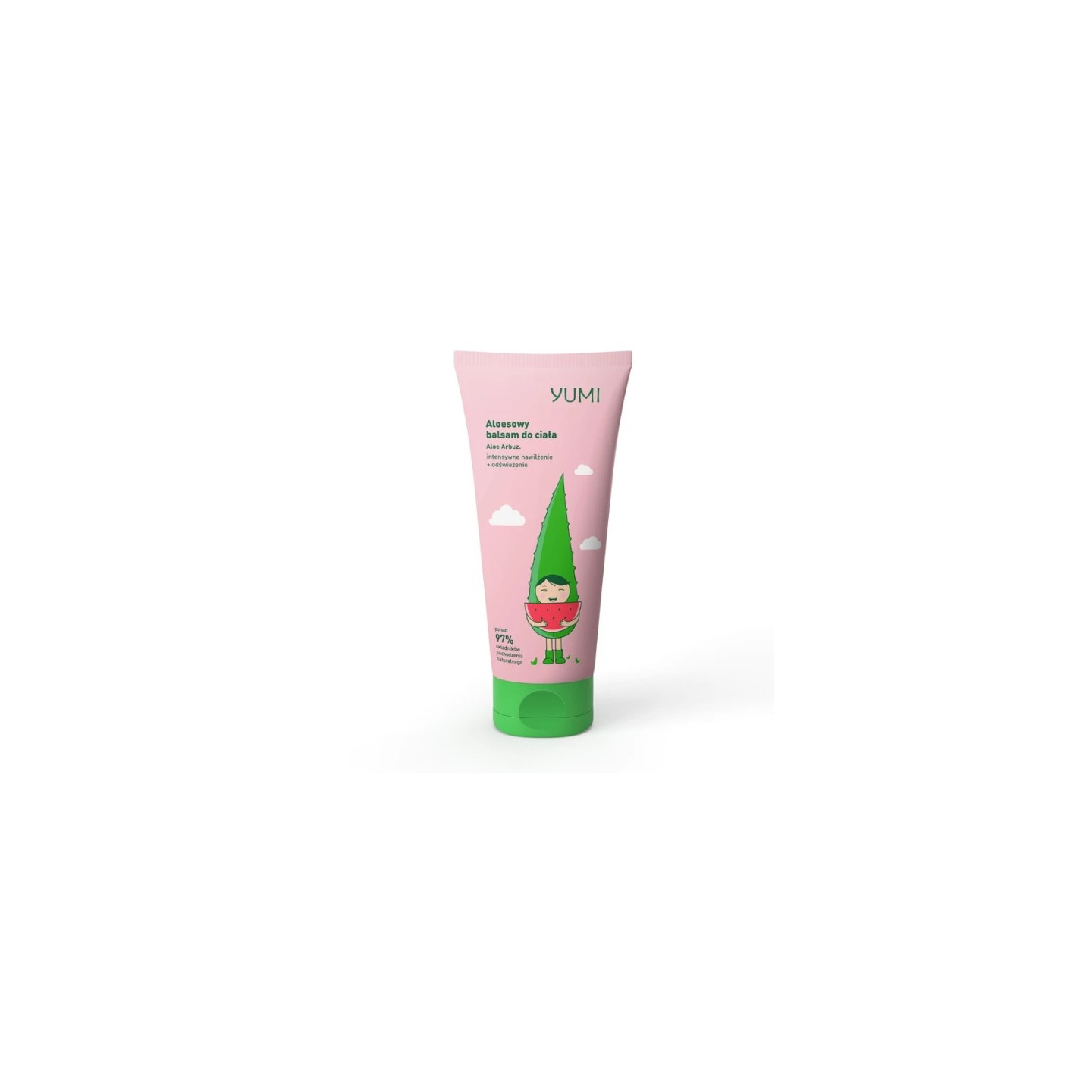 Yumi Aloe Body Lotion Intensief hydraterende Watermeloen 300 ml Yumi Aloe Watermeloen Body Lotion is een product dat de lichaamshuid intensief verzorgt. Dit is waarom je het zou moeten proberen: